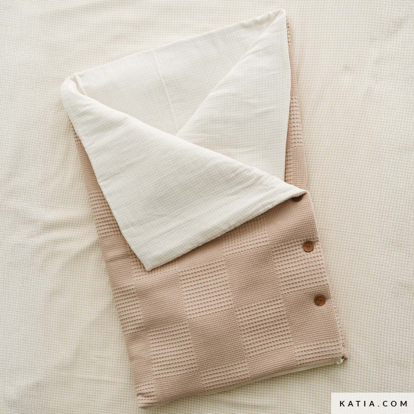 Mit dem Schnittmuster für den Babystrampelsack Kusi von Katia Fabrics kannst du ein praktisches, warmes und bequemes Accessoire für ein Neugeborenes nähen. Sein umhüllendes Design mit seitlichen Knöpfen schützt das Baby vor Kälte und hält es jederzeit eingekuschelt. Nähe ihn aus weichen Stoffen wie Waffelpiqué, Musselin, Steppbaumwolle oder Plüschstoffen von Katia Fabrics und erhalte einen gemütlichen, funktionalen und einzigartigen Baby-Sack oder Pucksack.