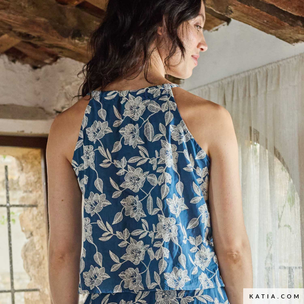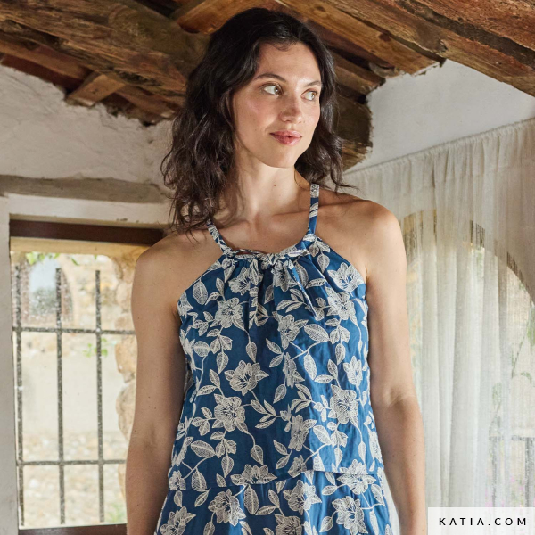 Entdecke das Schnittmuster für ein Damen-Top von Katia Fabrics – ein leichtes und frisches Kleidungsstück mit schmalen Trägern und verstellbarem, gerafftem Ausschnitt mit Schleife. Sein schlichtes und vielseitiges Design macht es zum perfekten Begleiter für den Sommer, kombinierbar mit Shorts, Röcken oder Hosen. Du kannst es aus weichen, luftigen Stoffen wie Baumwolle oder Viskose von Katia Fabrics nähen und so ein bequemes und feminines Top erhalten.