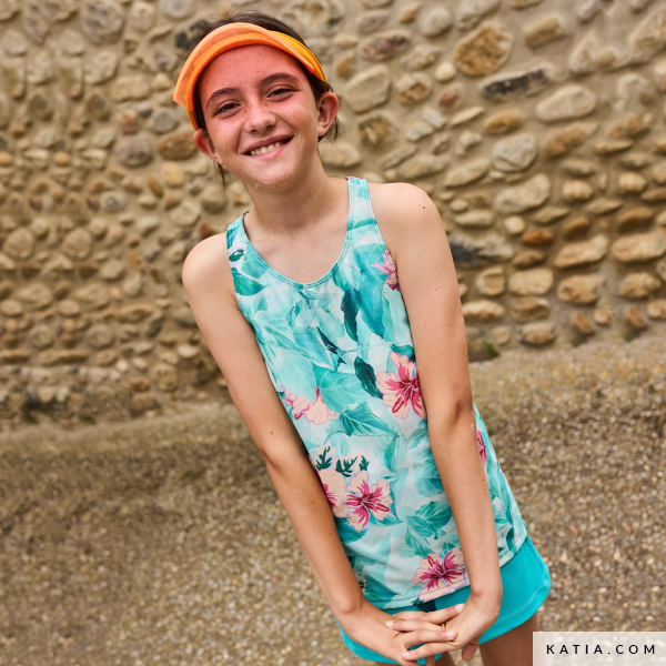 Nähe mit diesem Schnittmuster von Katia Fabrics in Kindergröße ein Trägertop mit Schleife am Rücken – ideal für die heißesten Tage. Das Design besticht durch das gekreuzte Rückenteil mit dekorativer Schleife, das einen frischen und originellen Touch verleiht. Ein bequemes und vielseitiges Kleidungsstück, perfekt für legere oder schickere Looks, je nach gewähltem Stoff. Empfohlen für leichte und elastische Stoffe wie uni- oder bedruckten Jerseystoff von Katia Fabrics. Ein einfaches und unterhaltsames Nähprojekt, um einzigartige Kinderkleidung zu kreieren.