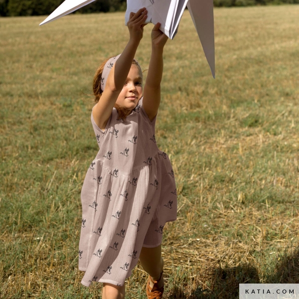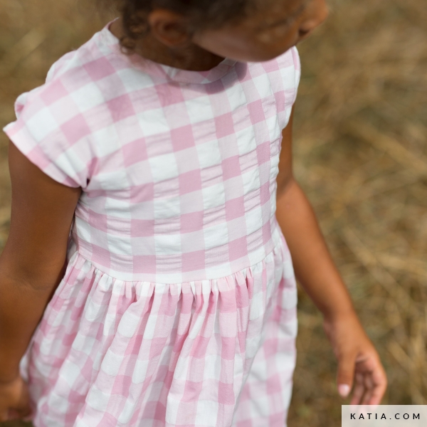 Nähen Sie dieses Kleid mit kurzen Ärmeln und angekräuseltem Rock mit unserer Anleitung. Ein Basic-Kleid, das sich bestens mit einer breiten Palette unserer Sommerstoffe arbeiten lässt: Popeline, Jersey, Musselin, Denim, Vichy etc.