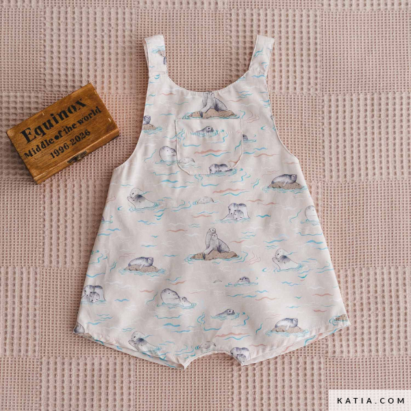 Entdecke dieses praktische und bezaubernde Schnittmuster für eine kurze Latzhose mit gekreuzten Trägern von Katia Fabrics, ideal für Babys in den wärmeren Monaten. Das Design umfasst eine dekorative Fronttasche, breite Träger, die sich am Rücken kreuzen, und einen elastischen Bund für eine bequeme Passform. Ein frisches Kleidungsstück, leicht anzuziehen und perfekt zum Nähen mit leichten Stoffen wie Musselin, Popeline oder Leinen. Ein unverzichtbares Nähprojekt, um einzigartige und bequeme Kinderkleidung herzustellen.