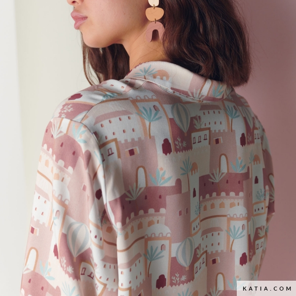 Lass es dir diese Frühlingssaison nicht entgehen, dieses Damenbluse mit Knöpfen und Dreiviertelärmeln zu nähen. Nähe dieses schöne und bequeme Hemd-Bluse mit dem Schnittmuster, das du im Schnittmusterheft Travel Postcards Spring-Summer 2024 von Katia Fabrics findest. Dank der bebilderten Anleitung, die diesem Schnittmuster beiliegt, wirst du sehen, dass es sich um eine sehr einfache Bluse handelt. Nähe sie mit einem der Viskosestoffe von Katia Fabrics. Du kannst sie auch aus dem neuen Flour Madras-Baumwollstoff mit Neontönen zaubern. Aufgrund des schönen Designs und des Komforts wird es mit Sicherheit zu deinen Lieblingskleidungsstück.