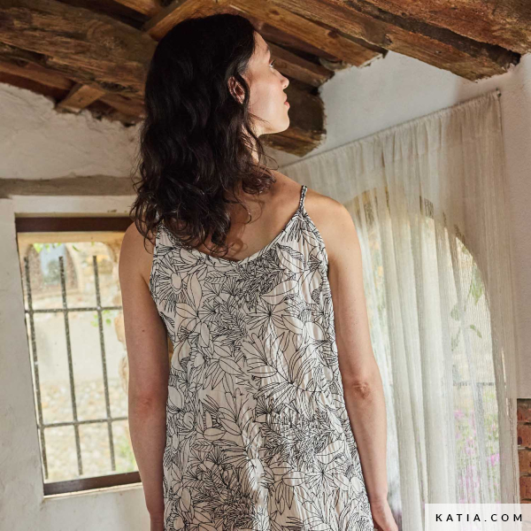 Wage es, ein Damenkleid mit Trägern mit diesem Schnittmuster von Katia Fabrics zu nähen. Sein Design mit V-Ausschnitt und weitem Rock bietet Komfort und Frische und macht es zum perfekten Sommerkleid. Nähe es aus weichen Stoffen wie Viskose, Baumwolle oder Leinen von Katia Fabrics und genieße ein vielseitiges Kleid, das je nach gewähltem Stoff sowohl für legere Looks als auch für besondere Anlässe geeignet ist.