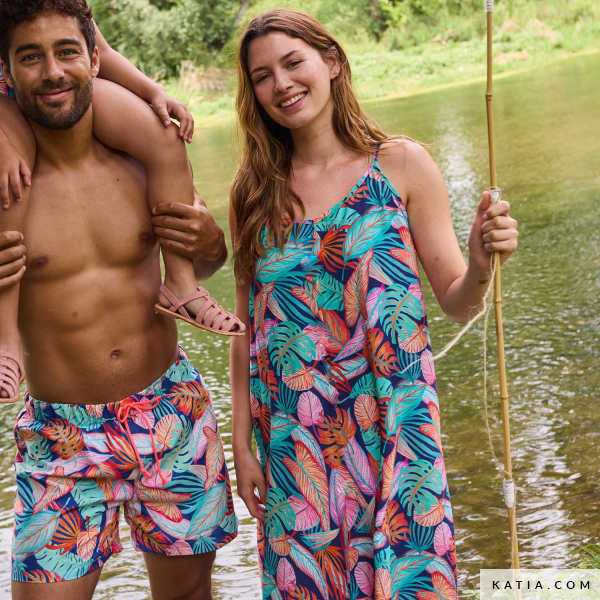 Wage es, ein Damenkleid mit Trägern mit diesem Schnittmuster von Katia Fabrics zu nähen. Sein Design mit V-Ausschnitt und weitem Rock bietet Komfort und Frische und macht es zum perfekten Sommerkleid. Nähe es aus weichen Stoffen wie Viskose, Baumwolle oder Leinen von Katia Fabrics und genieße ein vielseitiges Kleid, das je nach gewähltem Stoff sowohl für legere Looks als auch für besondere Anlässe geeignet ist.