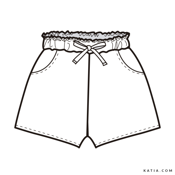 Nähe eine Mädchenshorts mit diesem Schnittmuster von Katia Fabrics – ein frisches, bequemes und vielseitiges Kleidungsstück für den Sommer. Das Design umfasst einen elastischen, gerafften Bund mit dekorativer Schleife und praktische Seitentaschen und verbindet so Stil und Funktionalität. Ideal zum Nähen von Kindershorts aus weichen, leichten Stoffen wie Baumwolle, Popeline oder elastischen Stoffen von Katia Fabrics. Ein einfaches Nähprojekt, um einzigartige und personalisierte Mädchenkleidung zu kreieren.