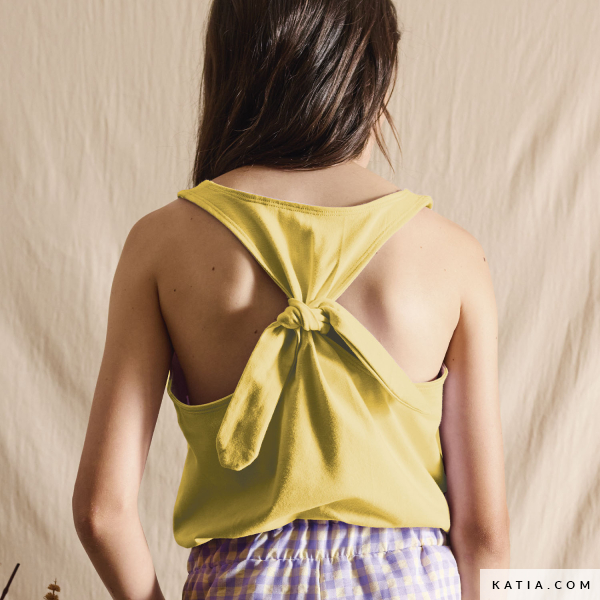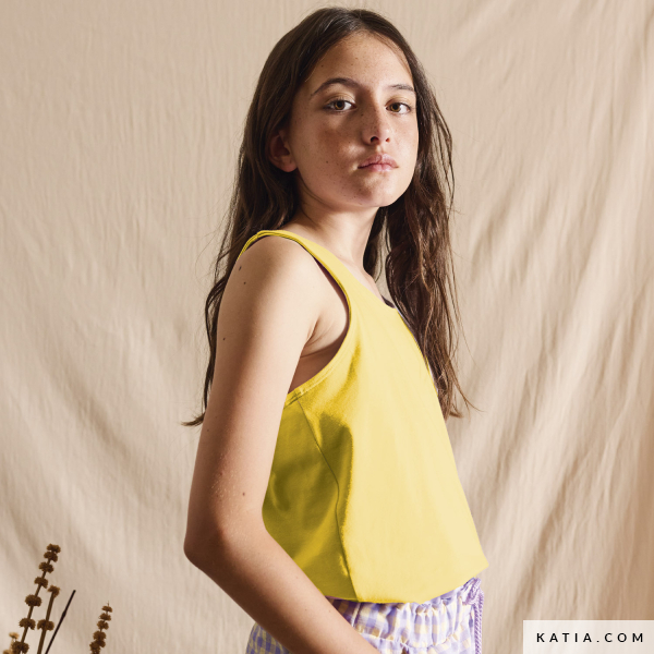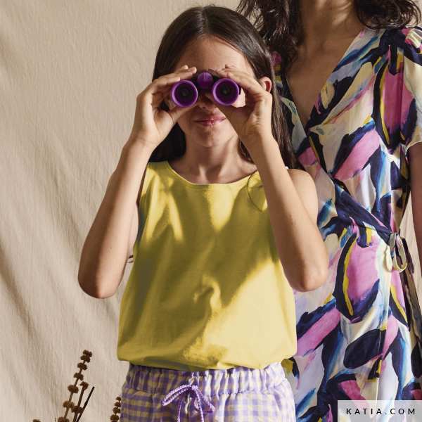 Nähe mit diesem Schnittmuster von Katia Fabrics in Kindergröße ein Trägertop mit Schleife am Rücken – ideal für die heißesten Tage. Das Design besticht durch das gekreuzte Rückenteil mit dekorativer Schleife, das einen frischen und originellen Touch verleiht. Ein bequemes und vielseitiges Kleidungsstück, perfekt für legere oder schickere Looks, je nach gewähltem Stoff. Empfohlen für leichte und elastische Stoffe wie uni- oder bedruckten Jerseystoff von Katia Fabrics. Ein einfaches und unterhaltsames Nähprojekt, um einzigartige Kinderkleidung zu kreieren.