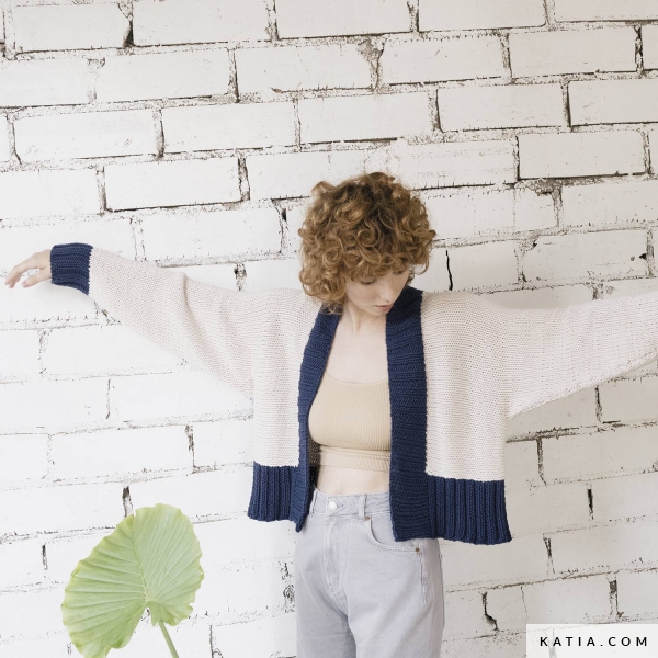 Wenn sich in deinem Kleiderschrank noch nichts Selbstgestricktes findet, kannst du das ganz einfach ändern – mit unseren Kits & Fun Happy Summer. Wir haben eine Auswahl von Strick- und Häkelmodellen für dich, die perfekt für den Einstieg in nachhaltige Mode sind. Wie wäre es also mit einer eleganten Strickjacke, die vom Marine-Stil inspiriert ist? Dafür brauchst du nur das Kit Dorotea, bestehend aus den entsprechenden Knäuel Easy Knit Cotton in zwei Farben, Stricknadeln und Wollnadel. Vervollständigt wird das Kit von der gedruckten Anleitung zum Stricken der Jacke in 4 verschiedenen Größen sowie einem Videotutorial, das dich beim Stricken dieses Designs 100 % Katia unterstützt.