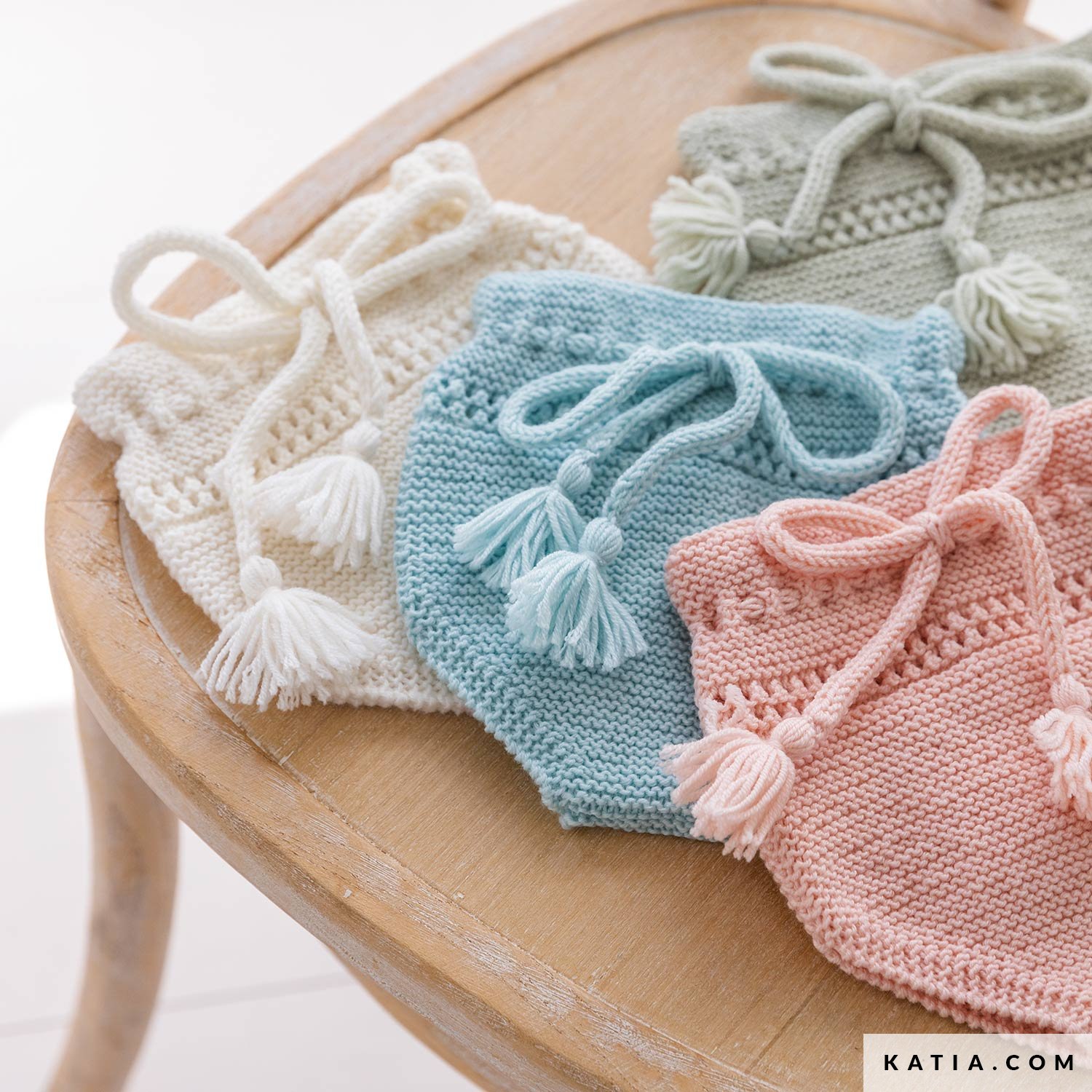 Diese Anleitung für eine Windelhose in Größe Neugeboren ist ideal für ein einfaches und süßes Kleidungsstück. Gestrickt in kraus rechts mit Concept Merino Baby oder Katia Peques, mit zartem Ajourmuster im oberen Teil und i-Cord in der Taille. Strick liebevoll einen Strampler für jeden Tag der Woche.