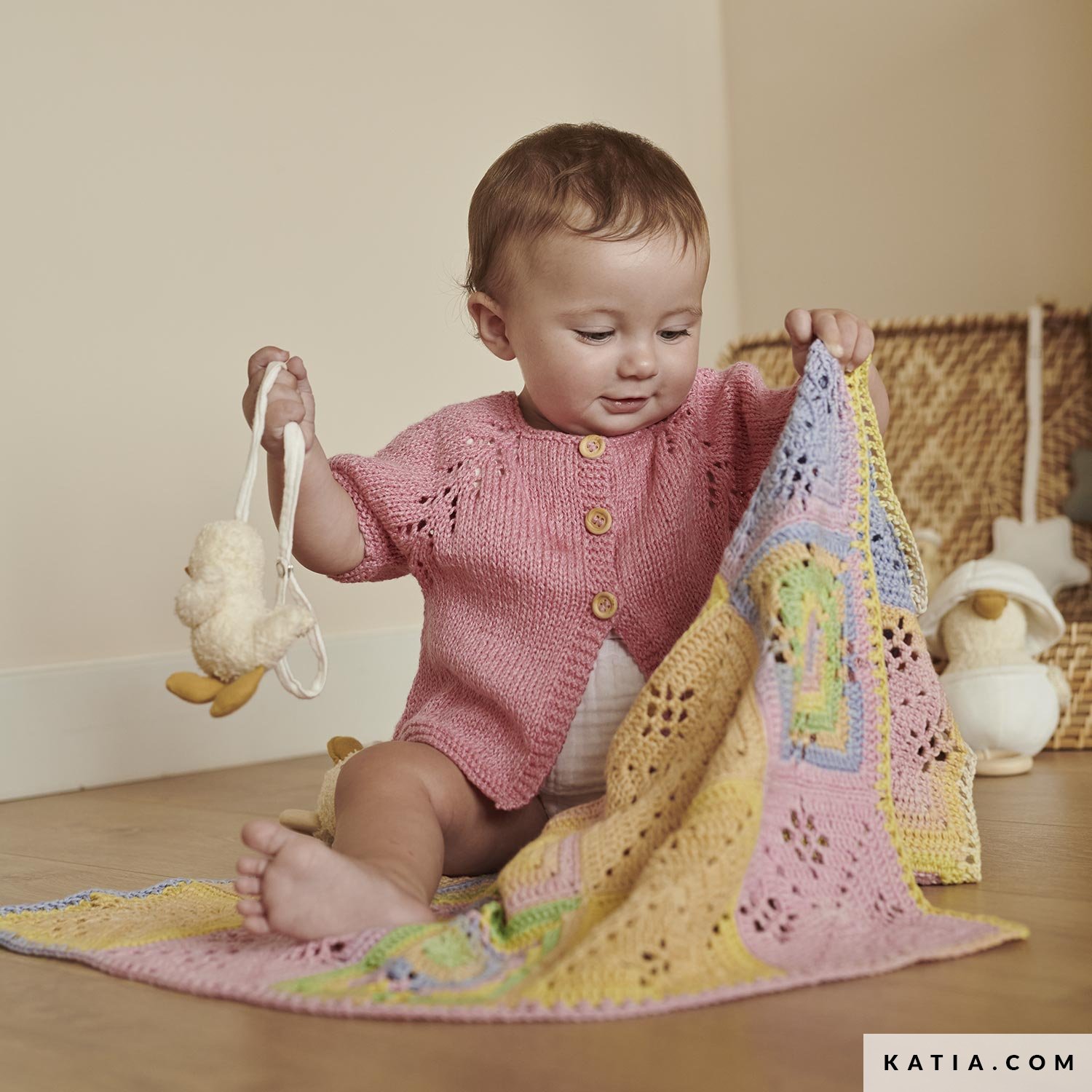 Die Anleitung für diese Decke, bestehend aus Granny Squares, die mit Fair Cotton Granny aus Bio-Baumwolle gehäkelt sind, enthält detaillierte Anweisungen und Diagramme, um jedes Quadrat von Hand zu häkeln und sie einfach zu verbinden. Verbinde die Quadrate, um ein einzigartiges und fröhliches Design zu schaffen und eine weiche und gemütliche Decke für dein Baby zu kreieren, voller Farbe und Liebe. Lade das PDF herunter und fange noch heute an, diese Decke mit lebendigen Farben zu häkeln!