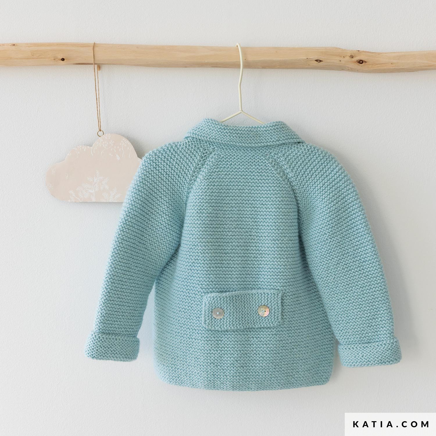 Kuschel dein Baby in diesen bezaubernden Mantel nach einer Anleitung aus der Zeitschrift Canastilla 4, gestrickt kraus rechts mit Katia Basic Merino oder Katia Merino Classic – zwei weiche, pflegeleichte Garne. Mit aufgesetzten Taschen, Hemdkragen und Knopfverschluss vorne ist dieses Modell ideal für kühlere Tage zwischen 9 und 12 Monaten (Größe 70-74).