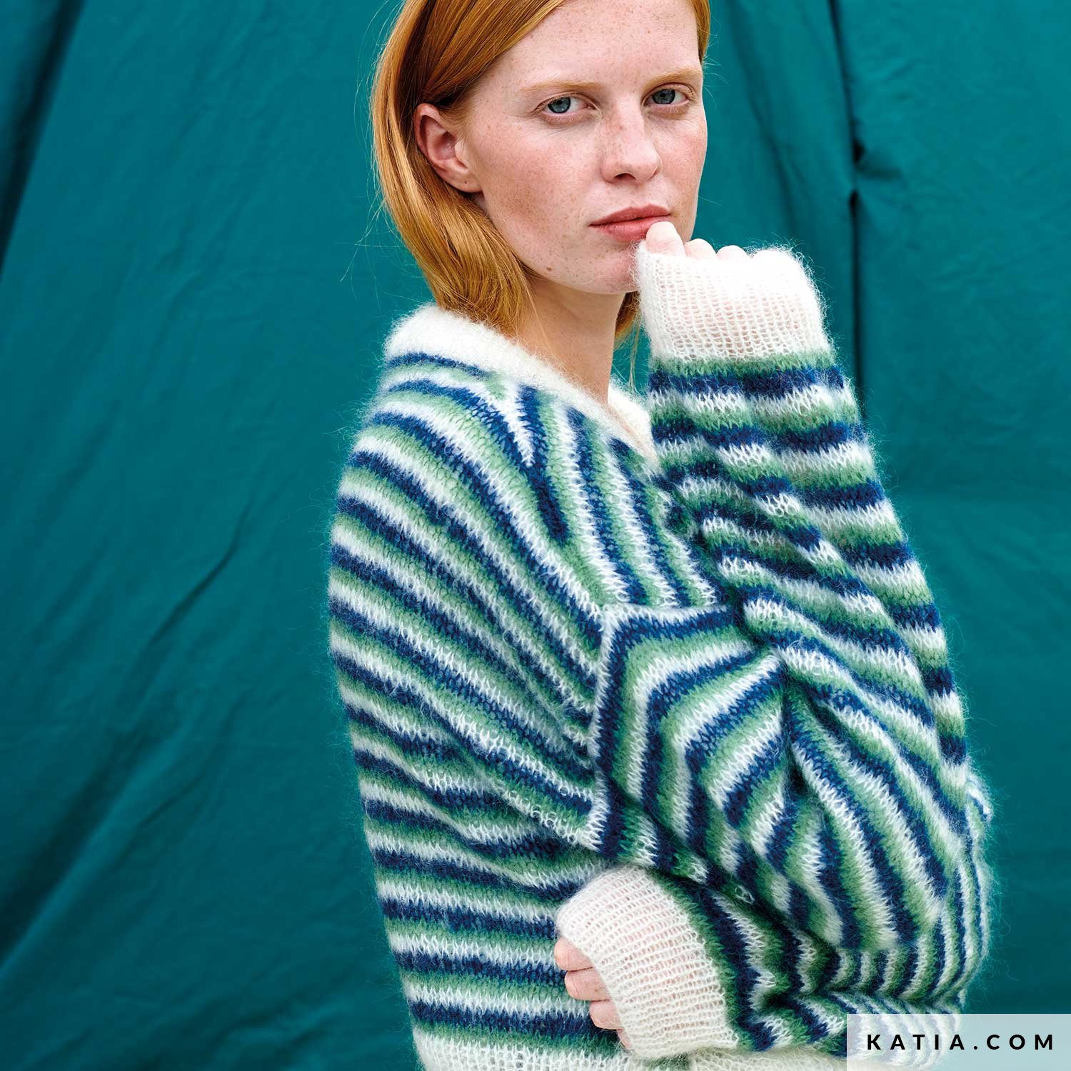 Diese wunderschöne Jacke mit schmalen Streifen aus 50 Mohair Shades setzt farbige Akzente bei jedem Outfit. Das breite Taillenbündchen sorgt für einen perfekten Sitz und mit den Streifen in drei Tönen lässt sie sich sowohl zu Jeans als auch zu Kleidern toll kombinieren.