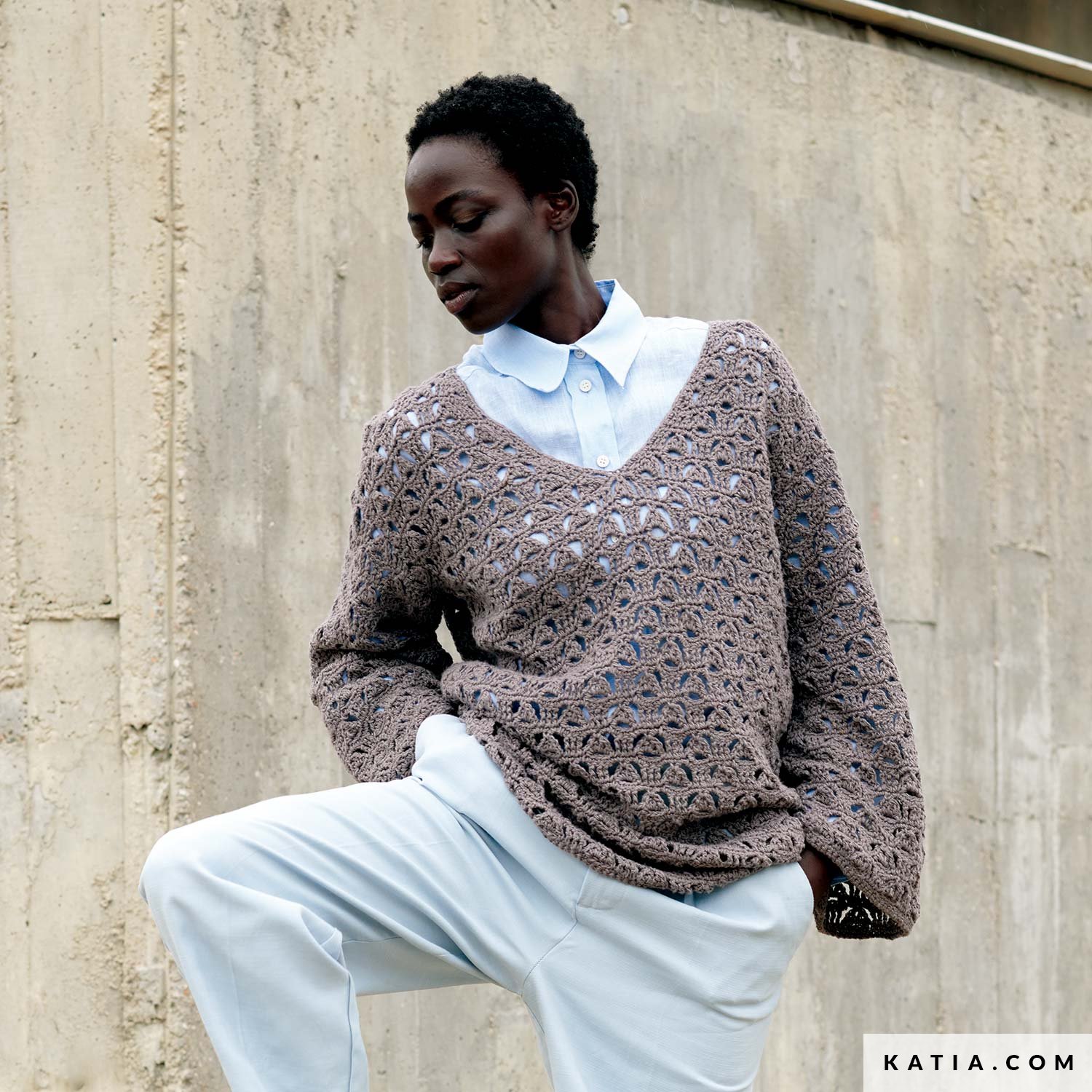 Trau dich, einen einzigartigen Maxi-Pullover mit dieser Häkelanleitung zu kreieren, ideal für alle, die ein besonderes Design suchen. Gehäkelt mit Summer Tweed von Concept by Katia, besticht er durch seinen eleganten V-Ausschnitt, ausgestellte Ärmel und das wunderschöne Lochmuster aus abwechselnden Dreiecken. Perfekt, um all deinen einfarbigen Looks eine einzigartige und besondere Note zu verleihen. Fang noch heute an zu häkeln und mach diesen Maxi-Pullover zu deinem neuen Lieblingsstück!
