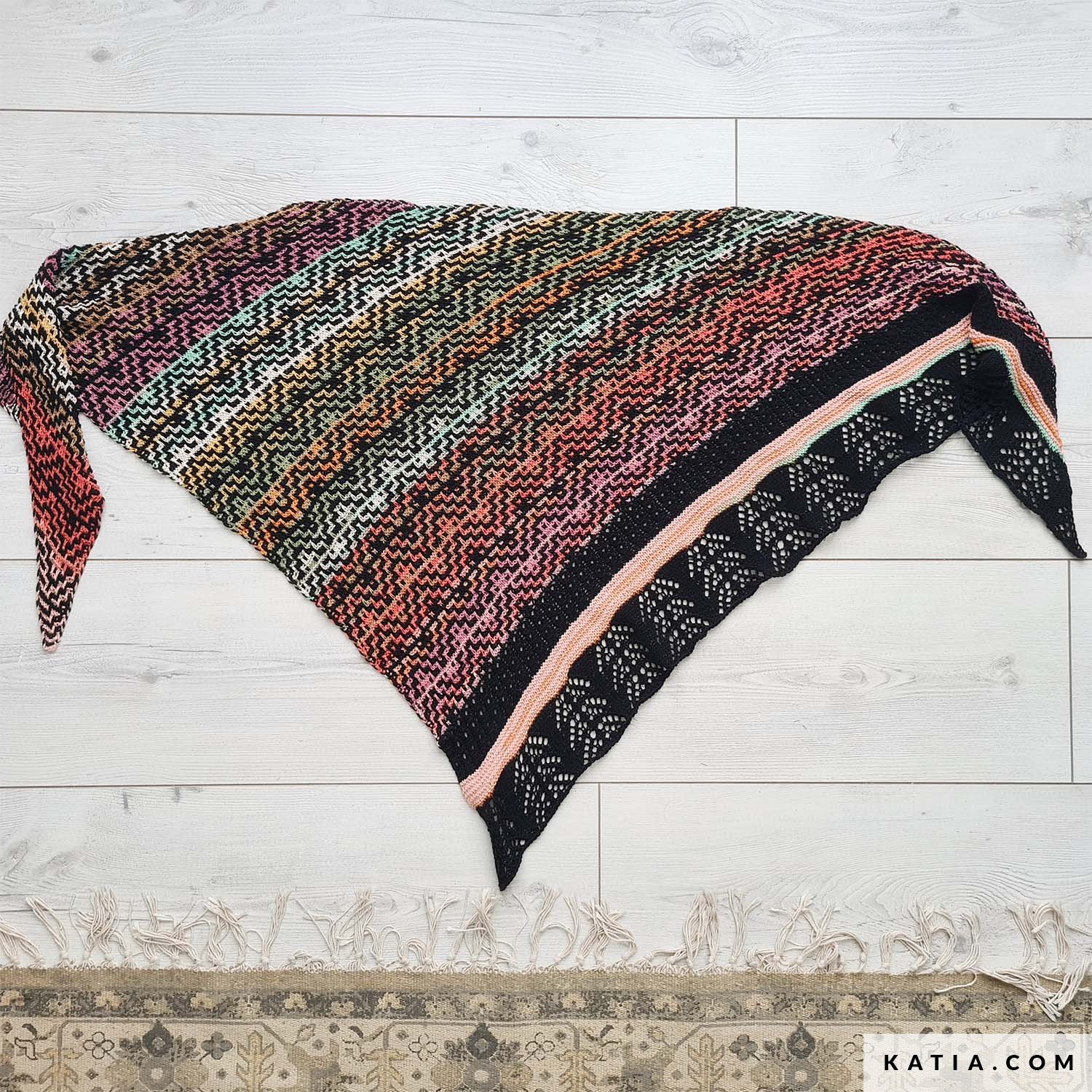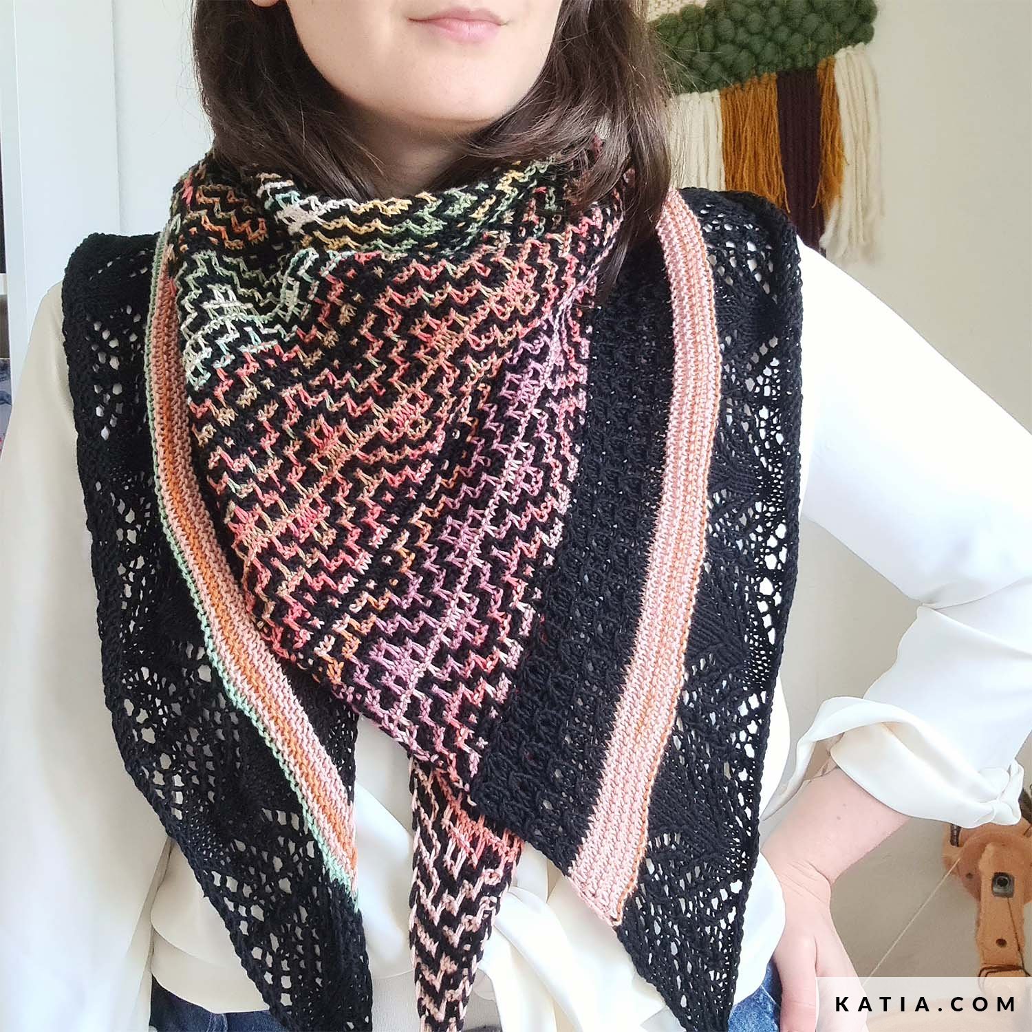 Strick das beeindruckende Tuch Elspeth aus Katia Fair Cotton Diverso und Fair Cotton. Das asymmetrische Tuch von Audrey Borrego @yarnflakes kombiniert farbenfrohe Mosaikmuster mit einer zarten Lace-Kante. Stricke ihn auch aus Katia Fair Cotton Infinity oder Fair Cotton Granny für beeindruckende Ergebnisse.