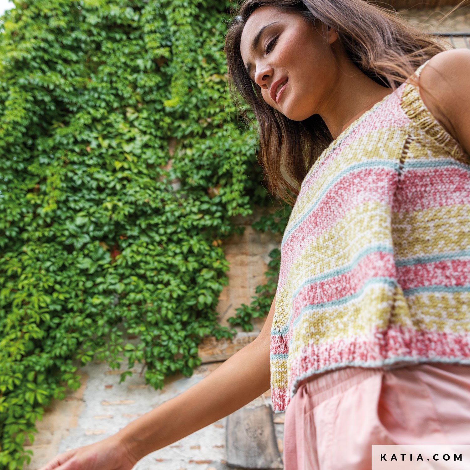 Stricke dieses Croptop im Oversize-Look ganz einfach in der Runde und genieße dabei den frischen, sommerlichen Jacquardeffekt. Die seitlichen Zunahmen bilden ein schönes Detail und betonen die Seitenlinie des Tops. Stricke sommerliche Modelle mit Katia Mediterranea, unserem Baumwollgarn, das ganz von allein ein fröhliches Jacquardmuster ergibt!
