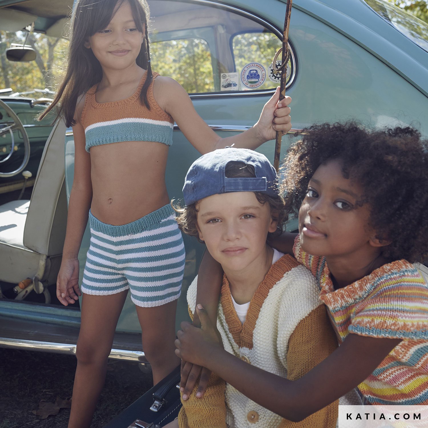 Stricke auf der Rundstricknadel mit Katia Mediterranea dieses einfache Kleid für Kinder. Das Jacquardmuster kommt dabei ganz von selbst! Folge einfach der Strickanleitung für ein tolles Kindermodell mit Raglanärmeln und Abschlüssen im Rippenmuster 2x2. Die Anleitung ist verfügbar für die Größen 2 bis 10 Jahre.