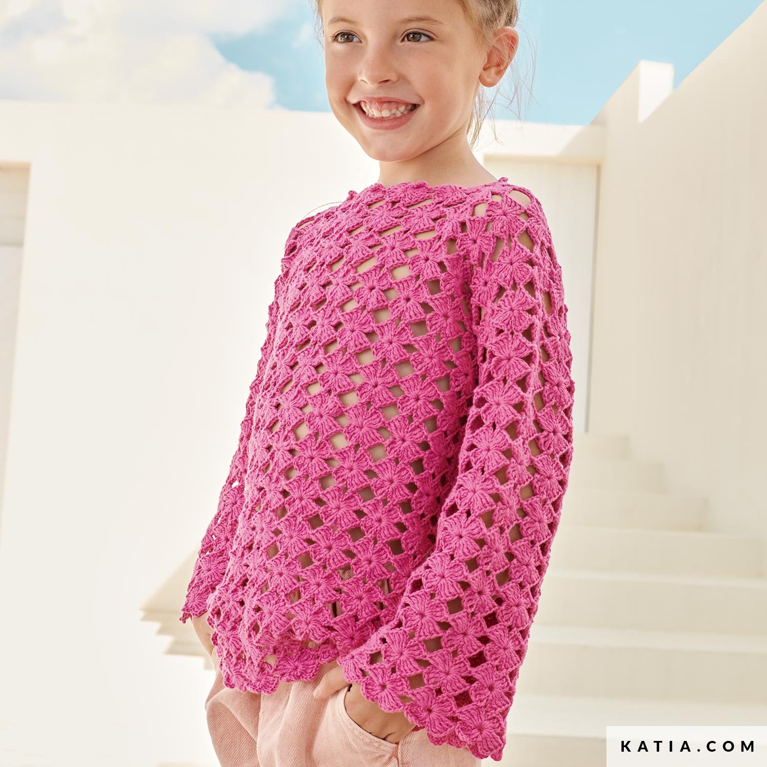Gib der Garderobe deiner Kleinen mit diesem wunderschönen gehäkelten Blumenpullover einen einzigartigen Stil! Die Anleitung aus der Zeitschrift All Seasons 5 ist perfekt für Mädchen im Alter von 4 bis 12 Jahren (Größen 104-152). Cotton-Cashmere von Concept by Katia, ein seidiges und weiches Garn, bietet deiner Tochter den Komfort, den sie das ganze Jahr über braucht. Häkle Blumen in Reihen in einem lebendigen Fuchsia, um diesen lustigen Pullover für deine Tochter oder Enkelin zu machen. Warte nicht länger und fange an, diesen bezaubernden Pullover für deine kleine Prinzessin zu häkeln!