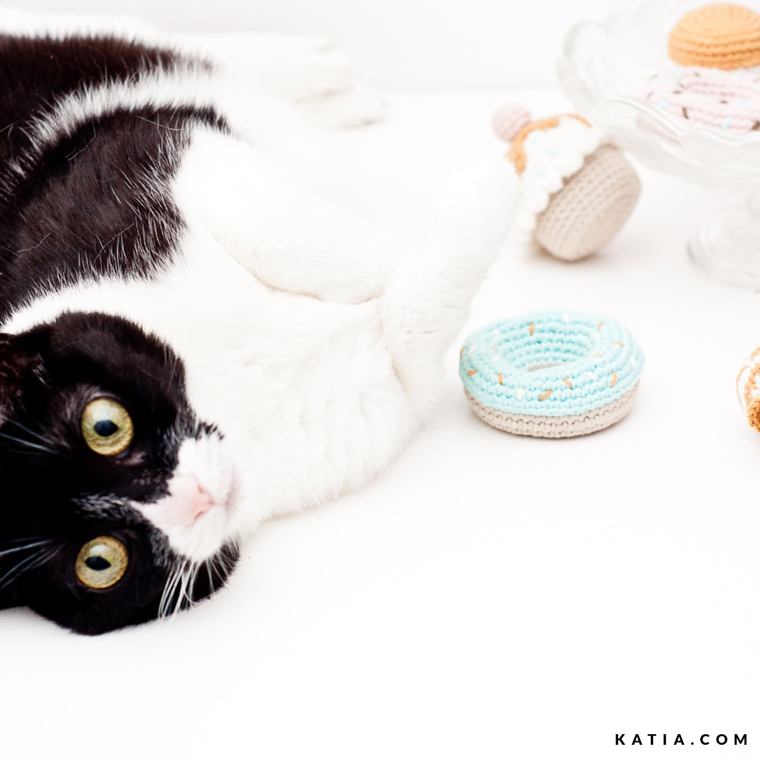 Donuts, Macaron, Bonbons und Cupcakes… Süßes zum Spielen! Entdecke, wie einfach es ist, gehäkeltes Katzenspielzeug in Form unserer liebsten Süßigkeiten selbstzumachen.
