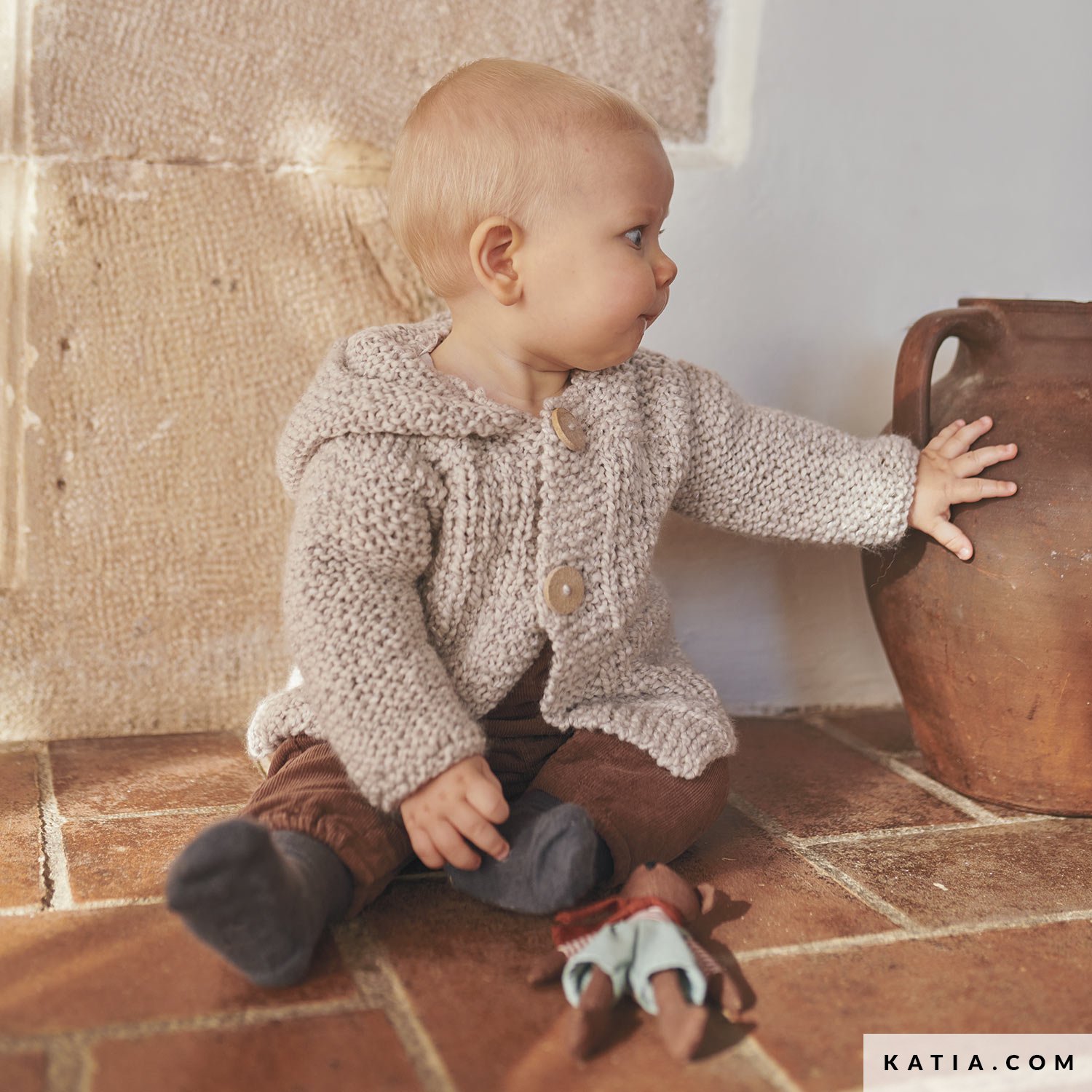 Mach eine süße Kapuzenjacke für dein Baby selbst - mit unserer einfachen Anleitung aus dem Magazin Katia Baby 106! Stricke aus unserem Garn Poesia mit rustikalem Tweed-Effekt eine Jacke im Strukturmuster und Kraus rechts mit einem Verschluss aus 3 Holzknöpfen. Lade die Anleitung im PDF-Format herunter oder hol dir die Zeitschrift und lass die Nadeln glühen!