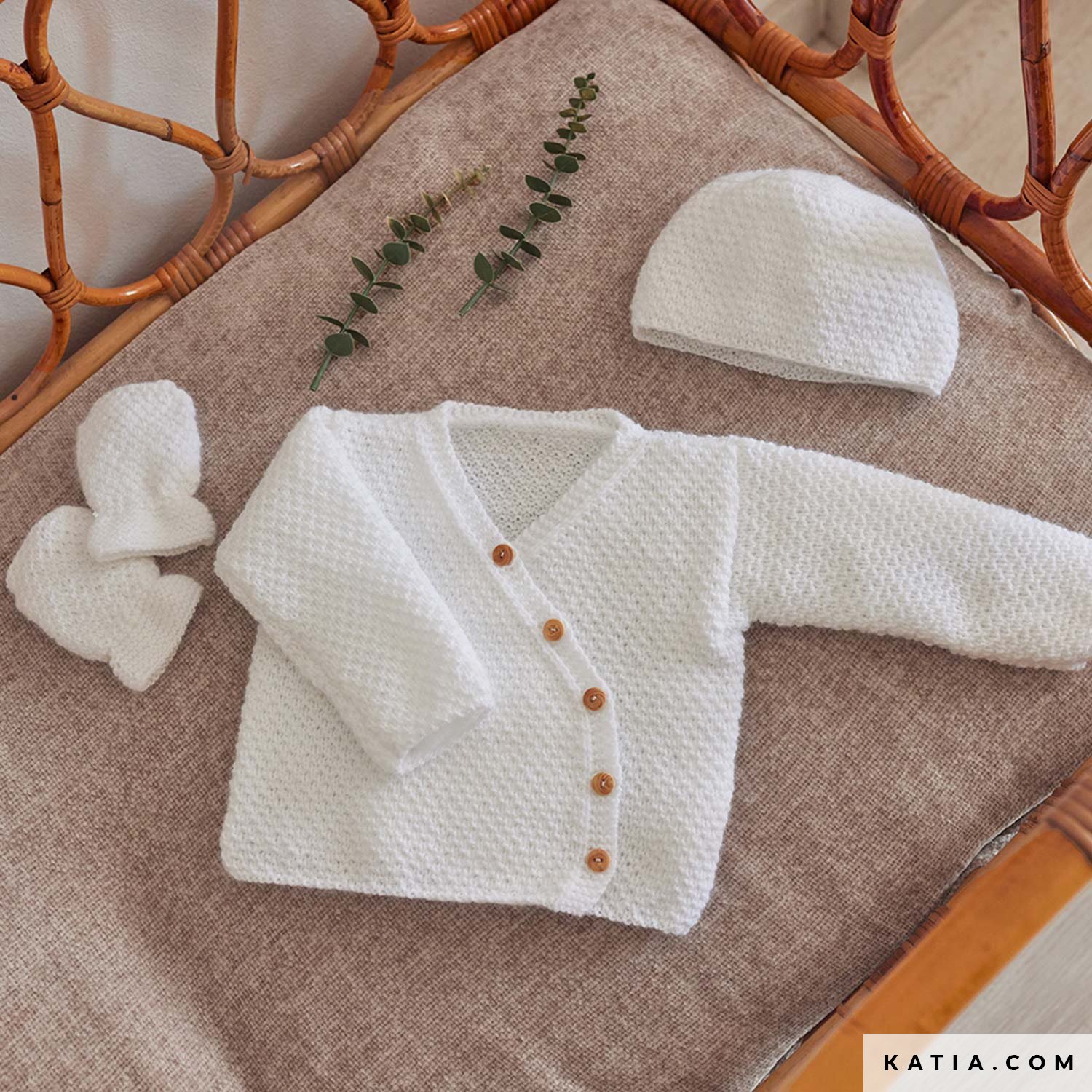 Kreiere diesen bezaubernden Baby-Wickelpullover mit Katia Peques oder Merino Baby von Concept by Katia für eine unglaubliche Weichheit. Dieses Design, im Fantasiemuster gestrickt, hat eine Wickelvorderseite mit 5 Holzknöpfen und Abschlüsse in kraus rechts, die Komfort und Stil garantieren. Verfügbar in Größen für Neugeborene bis 12 Monate (Größen 52-74). Fang heute an, dieses einzigartige Kleidungsstück für deinen kleinen Schatz zu stricken!