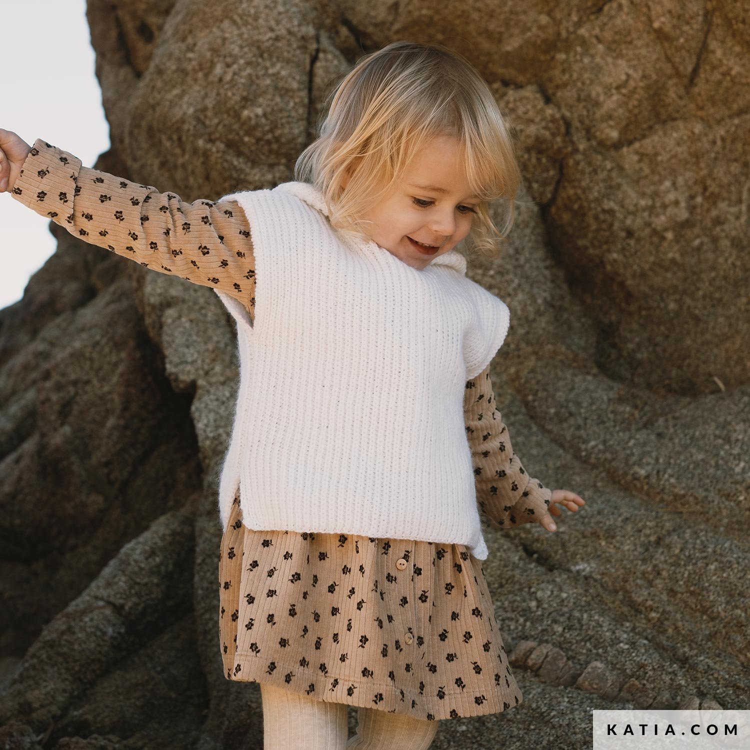 Anleitung, um einen Pullunder mit Kapuze aus dem Garn Baby Nature zu arbeiten. Stricke diesen kindlichen Pullunder mit Schlitzen an den Seiten und einer Quaste als moderne Deko an der Kapuze. Eine einfache Anleitung mit geradem und einfachem Schnitt ideal um ein warmes Kleidungsstück als Ergänzung zu allen Winteroutfits zu arbeiten.