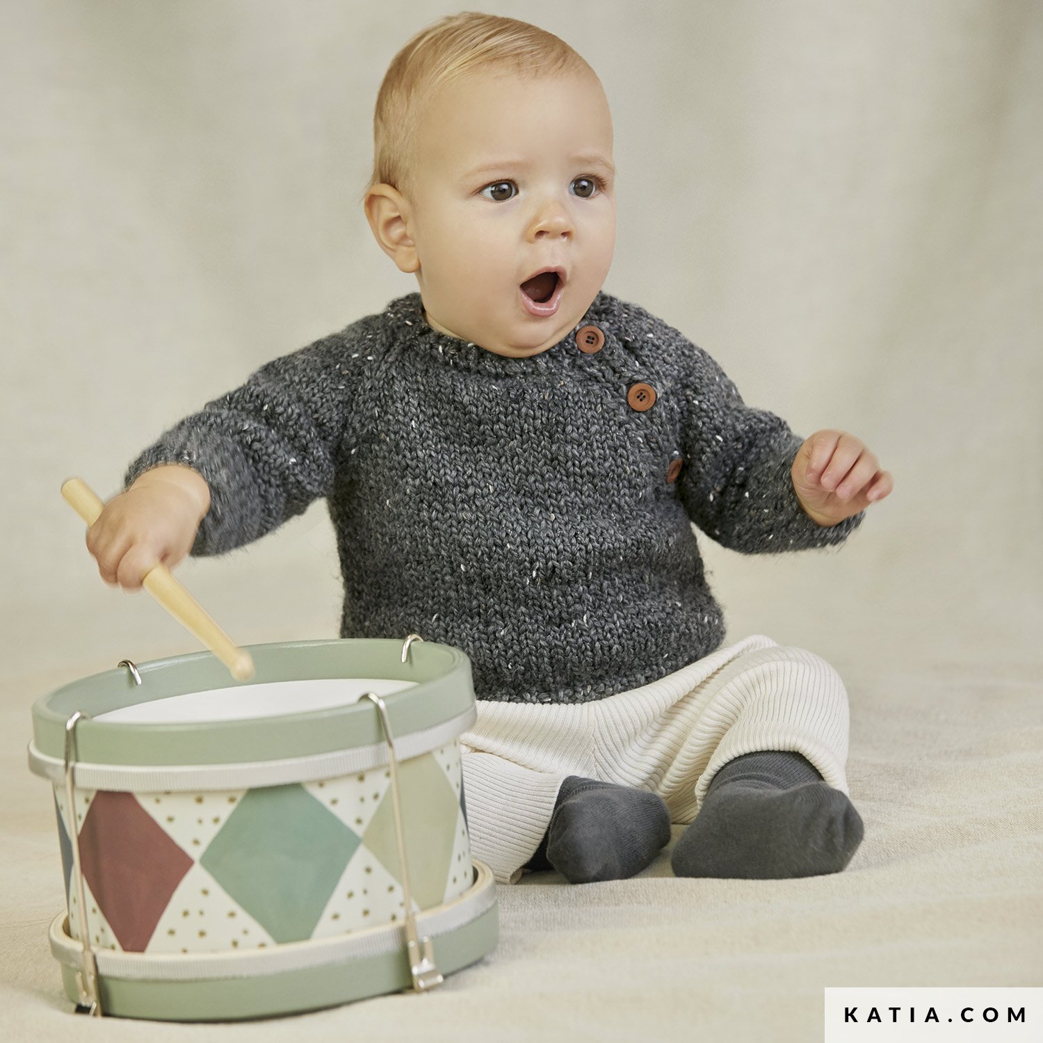 Bei diesem klassischen Pullover in Glatt rechts mit Raglanärmeln wird eine Raglanlinie mit 3 Knöpfen geschlossen. Such dir aus der Farbpalette unseres kuschelweichen Garns Poesia deinen Ton aus und stricke diesen süßen Babypulli so oft, wie du möchtest.