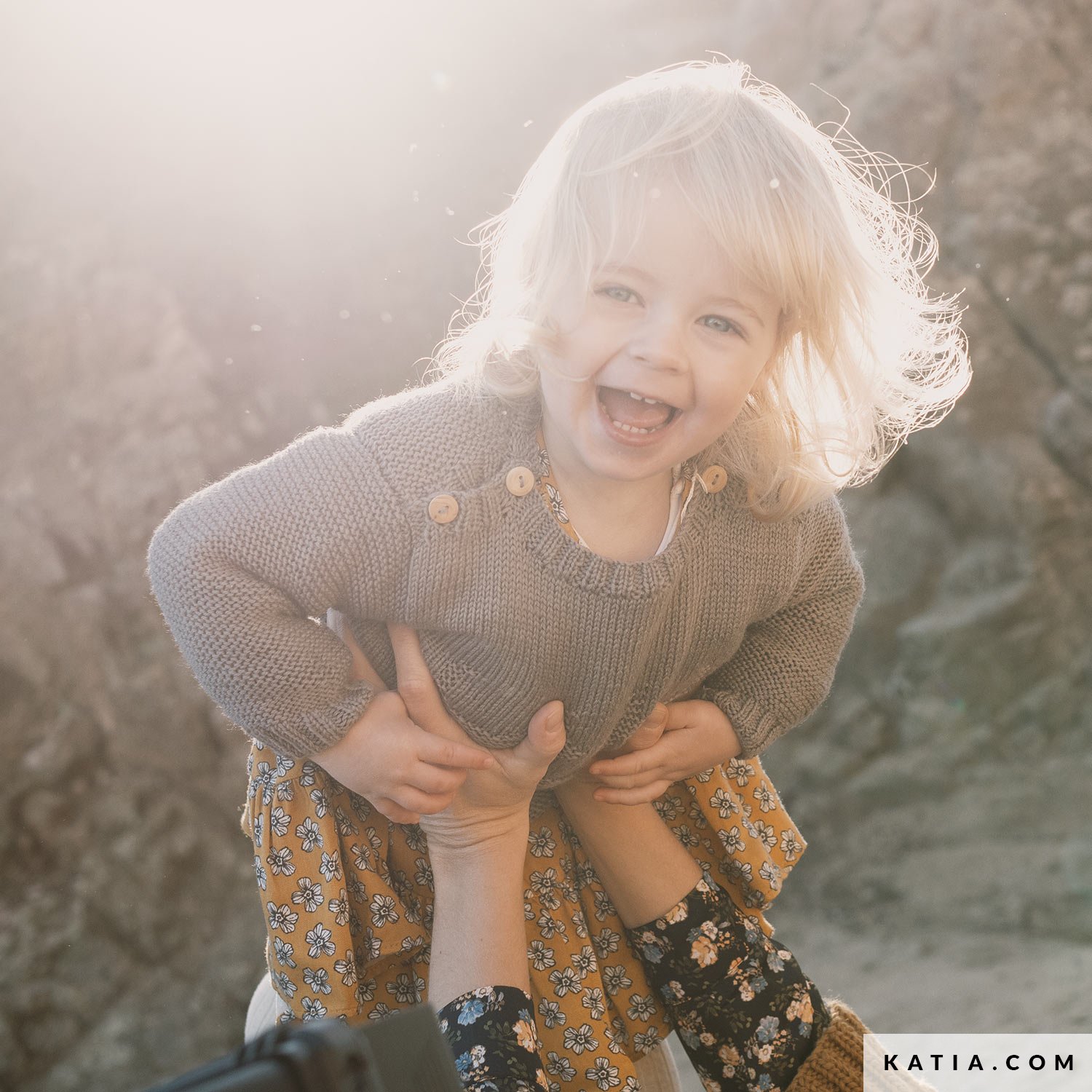 Dieser Pullover aus dem weichen Garn Baby Natur ist perfekt für die aktiven Tage. Er wird durch ein eingestricktes Hündchen im Vorderteil und 2 Knöpfen auf den Schultern verziert.