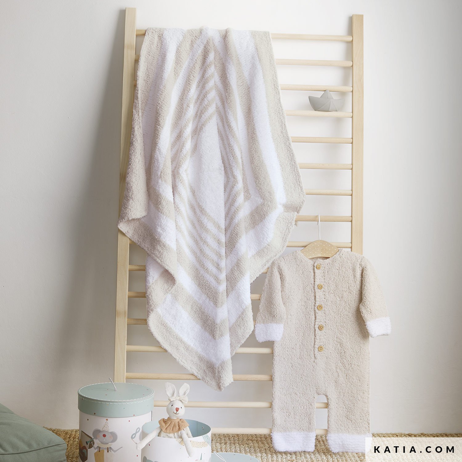 Langärmeliger Strampler mit Plüsch-Touch, der mit Copito Soft gestrickt wird. Folgen Sie der einfachen Strickanleitung, um dieses Modell anzufertigen. Das Vorderteil wird mit Knöpfen verschlossen, um das An- und Auskleiden des Babys zu erleichtern. Und um die hübsche Farbe dieses Stramplers hervorzuheben, werden die Arm- und Beinbündchen mit einer anderen Farbe gestrickt.