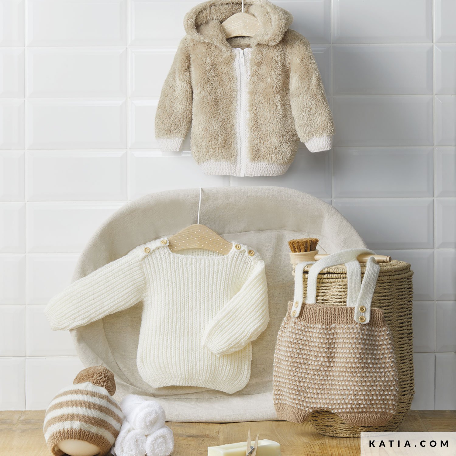 Dieses zweifarbige Baby-Strickhöschen mit verkreuzten Trägern wird mit geraden Stricknadeln gestrickt. Ein praktisches und einfaches Modell, bei dem Sie neue Strickmuster ausprobieren können. Peques garantiert Ihnen die beste Qualität für Ihre Babykleidung. Kombinieren Sie es mit dieser Mütze.