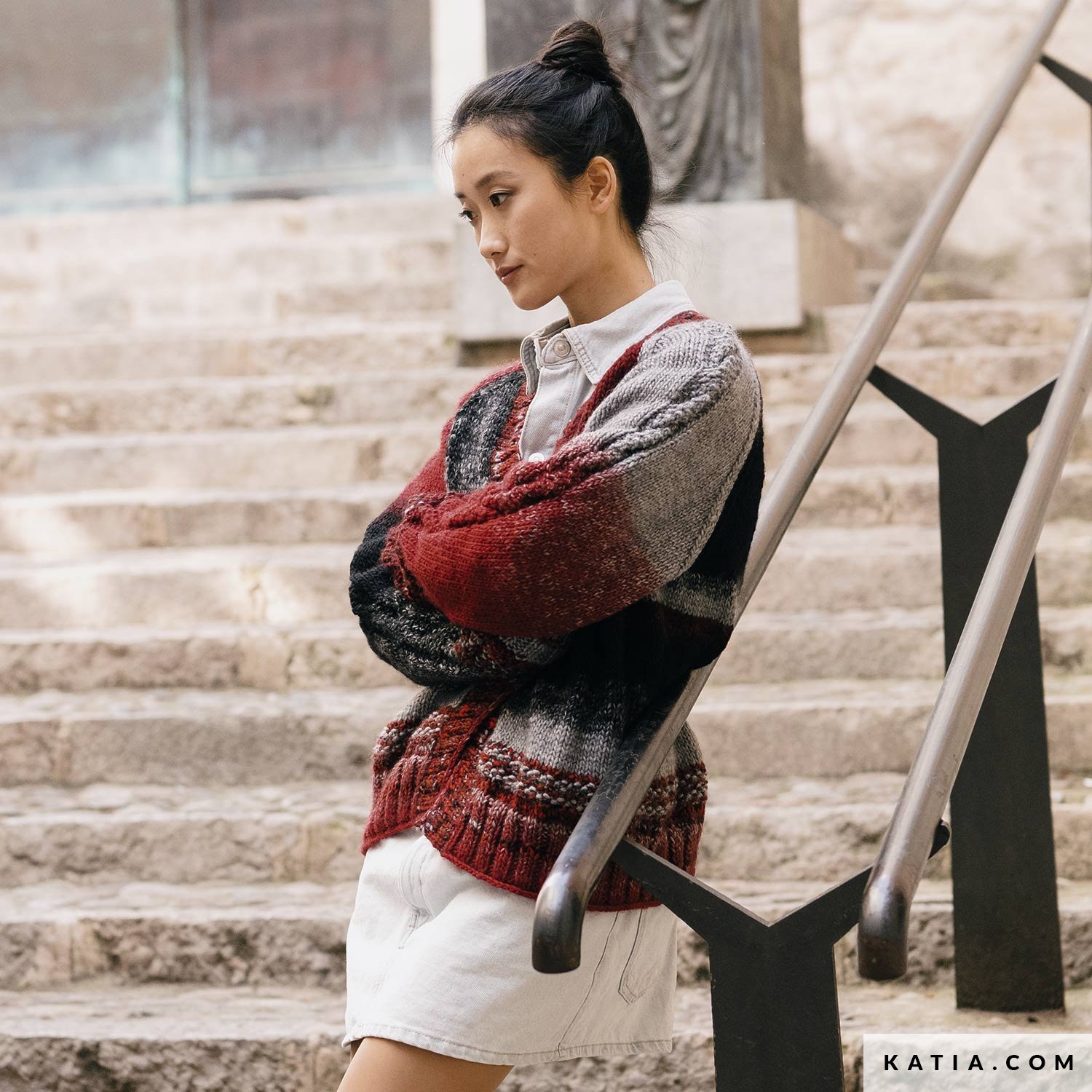 Stricke mit dieser Anleitung eine Jacke mit Raglan-Ausschnitt aus Savana Degradé und Savana Mouliné, um eine schöne Kombination aus Degradefarben zu schaffen. Die Jacke mit Zöpfen auf den Armen ist ein sportliches Modell und passt zu jedem Jeansstil.