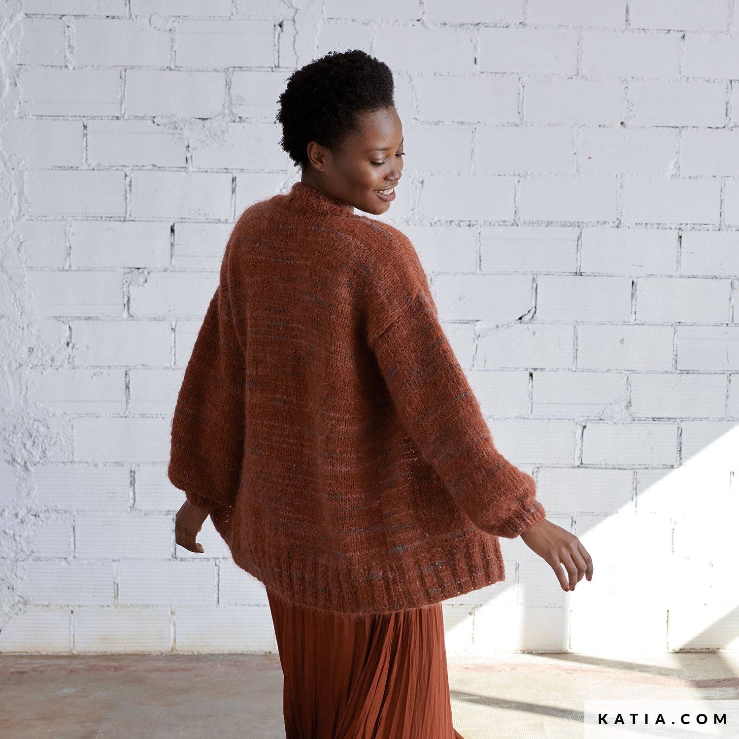 Entdecke die Anleitung für eine Maxi-Jacke, gestrickt mit Soho Alpaca von Concept by Katia. Dieses Kleidungsstück mit geraden und einfachen Linien, Puffärmeln und Seitentaschen wird in glatt rechts gestrickt. Die einfache und gerade Form dieser Jacke erlaubt es dir, die Länge leicht nach deinem Geschmack anzupassen. Vielseitig und perfekt für jeden Look, trage sie tagsüber oder abends, füge einen Gürtel hinzu, um die Taille zu betonen und ein einzigartiges Outfit zu kreieren. Finde die Anleitung in der Concept Multicolor Zeitschrift, um deine ideale Winterjacke zu stricken!!
