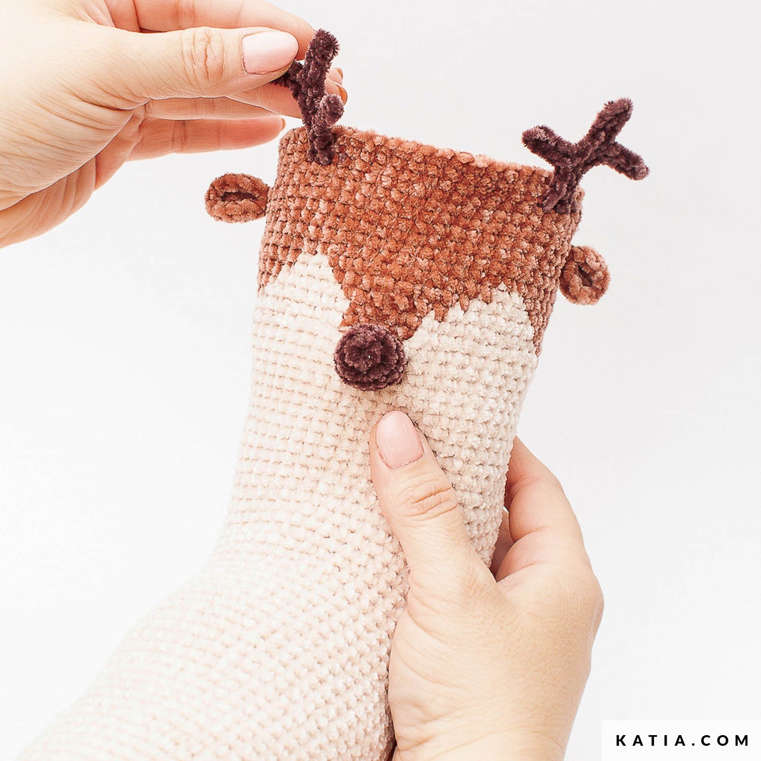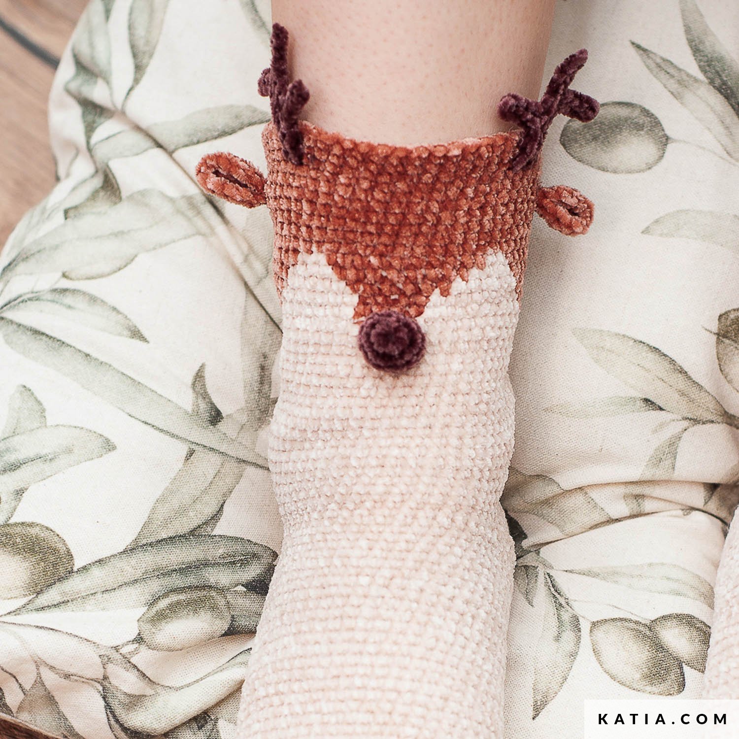 Bring festliche Stimmung und Handmade-Charme in dein Zuhause mit diesen originellen Rentier-Haussocken von Gallimelmas. Ein weihnachtliches Häkelprojekt, das Amigurumi-Details mit der Funktionalität von Socken vereint. Gehäkelt mit Katia Sockirumi, einem weichen Chenillegarn mit Plüscheffekt – perfekt für warme, bequeme und witzige Designs.