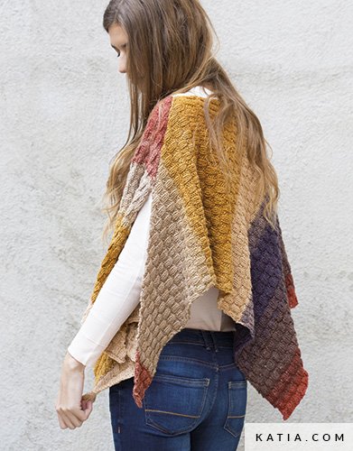 Anleitung Maxi-Poncho mit 3/4-Ärmeln Merino Aran Sunrise