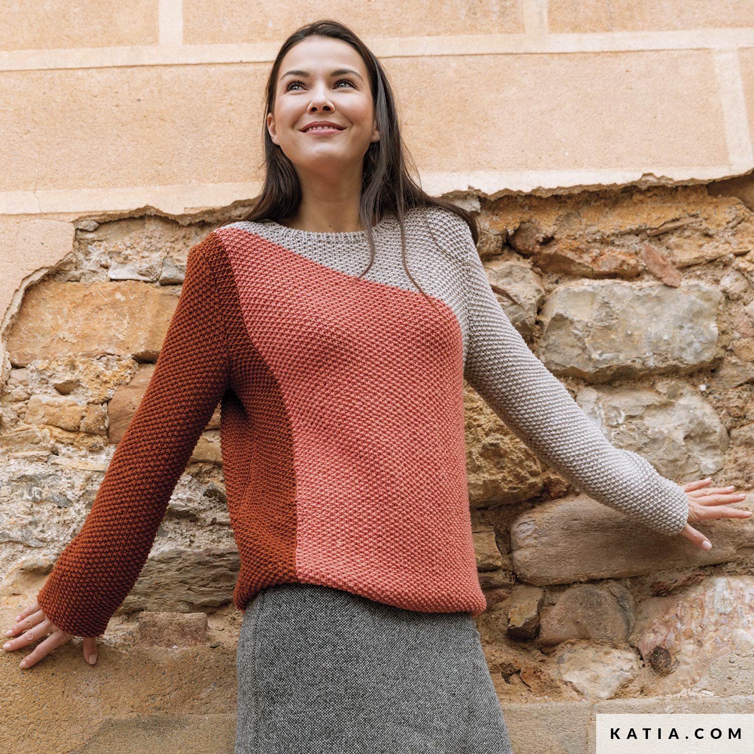 Diesen dreifarbigen Strickpulli, der mit Intarsientechnik gestrickt wird, kannst du mit allen Basics kombinieren, um einen Look zu erhalten, bei dem dein selbstgemachter Pulli der absolute Protagonist ist. Mit diesem Modell zeigen wir dir eine der vielen möglichen Farbkombinationen, die du mit Merino Sport zusammenstellen kannst: Naturfarben, Komplementärfarben, Farbverlaufsfarben etc. Lass dich inspirieren, wähle dein Farbtrio und du wirst für Überraschung sorgen!
