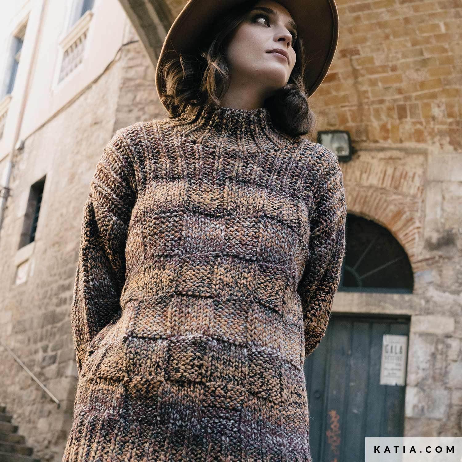 Dieser Damenpullover im Schachbrettmuster mit Rippenmuster 1x2 ist wirklich einzigartig. Das Fantasiegarn Euphoria, welches aus unterschiedlich farbigen Fäden gesponnen ist, verleiht dem Pullover einen rustikalen Touch. Der Pullover ist sehr lang und passt hervorragend zu jedem Landhauslook.