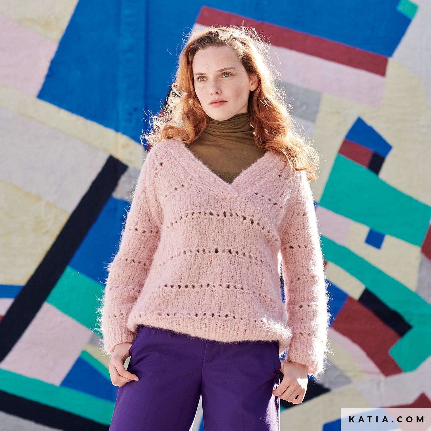 Genieße die Wärme und den Komfort dieses Raglanpullovers mit V-Ausschnitt und feinen Lochmuster-Details. Gestrickt aus unserem weichen Garn Reiki von Concept by Katia ist er einfach ideal für kalte Tage! Ein zeitloses Kleidungsstück, perfekt um sich warm zu halten, ohne auf Stil zu verzichten.