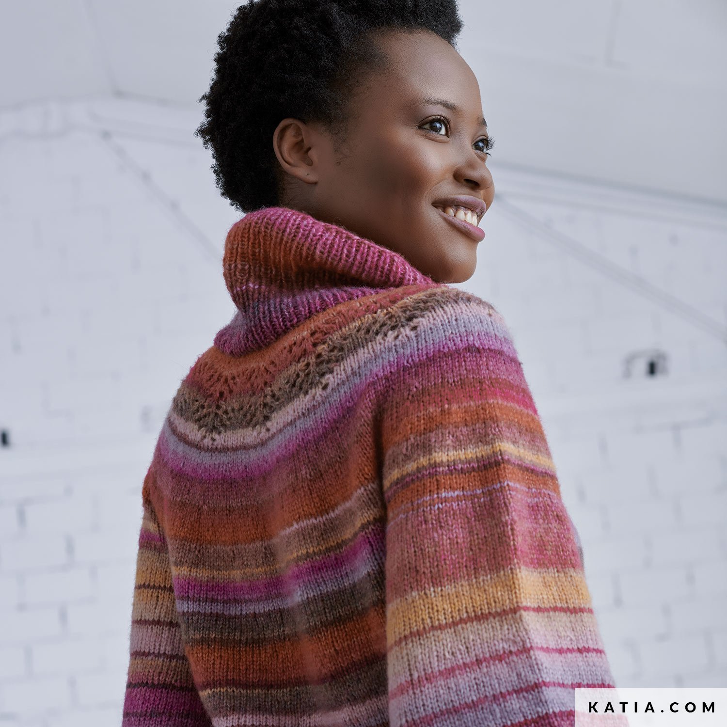 Entdecke den Crop-Pullover im Top-Down-Stil, der rund gestrickt wird, mit Angelo von Concept by Katia, einem Garn, das nicht nur leicht ist, sondern auch viel Wärme spendet. Dieser Pullover in glatt rechts besticht durch ein elegantes Lochmuster in der Passe, einen hohen Kragen und modische Puffärmel. Fang noch heute an, deinen Mini-Pullover zu stricken und mach diesen Winter jedes deiner Outfits einzigartig und originell! Finde die Anleitung und das Lochmuster-Diagramm in der Concept Multicolor Zeitschrift.