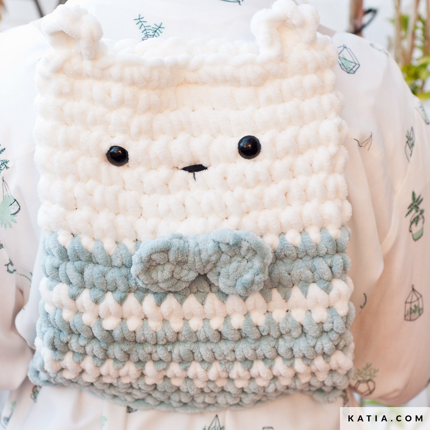 Weich und unglaublich süß ist der Rucksack in Form eines Bären mit Fliege aus nur 2 Knäuel Magic Ring, einem kuscheligen, dicken Garn mit Schlaufen, die das Häkeln erleichtern. Wenn du dir einen Rucksack im Kawaii-Stil und mit Plüsch-Effekt wünschst, mach ihn einfach selbst – mit Magic Ring und dieser Häkelanleitung. Diese bekommst du nicht nur von uns geschenkt, sondern wirst auch von einem Videotutorial unterstützt. Überrasche zu Weihnachten die Fans der niedlichen Rucksäcke und von süßen Tieren inspirierten Designs mit Magic Ring von Katia.