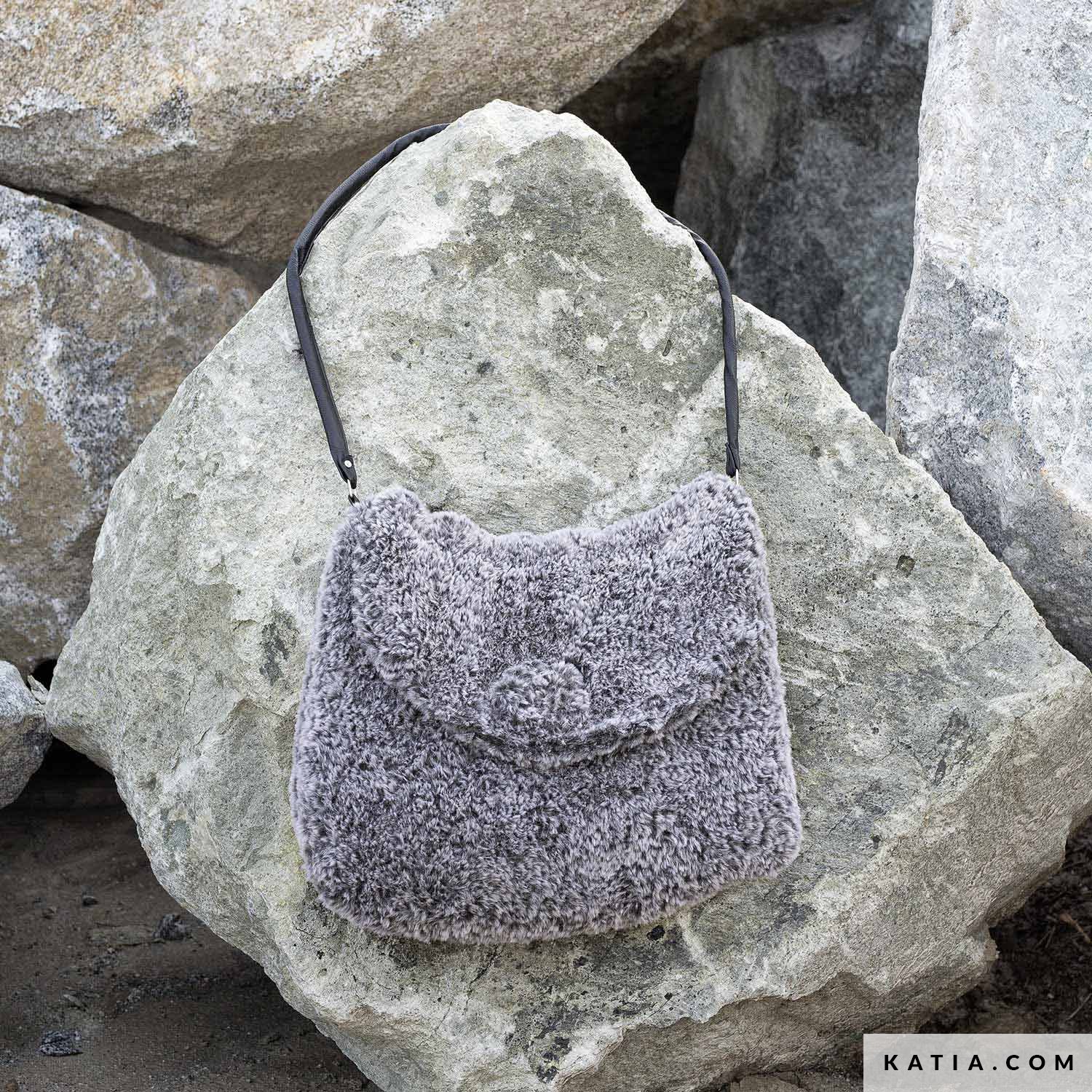 Flach gestrickte, weiche Handtasche mit Fake-Fur-Effekt