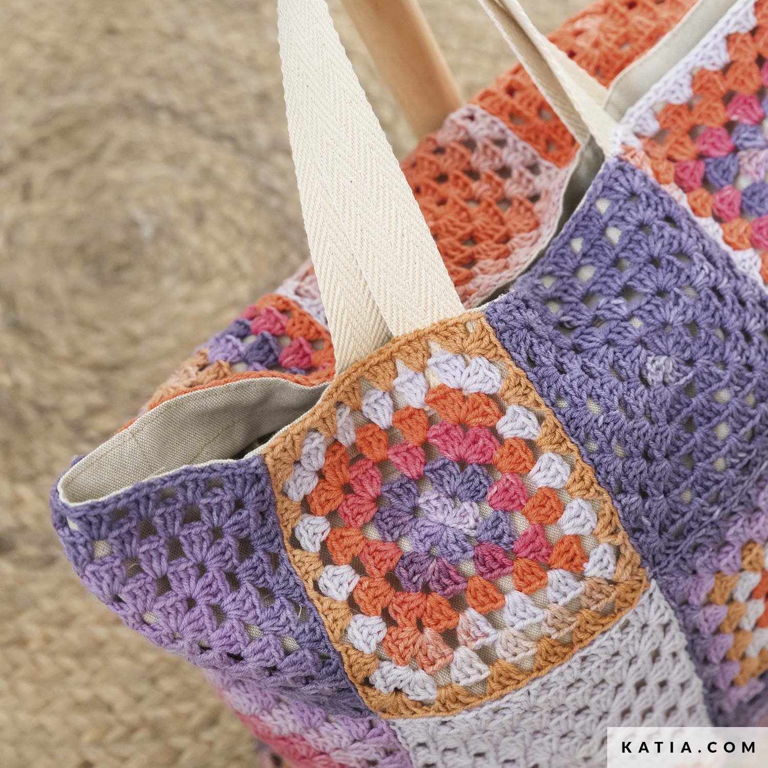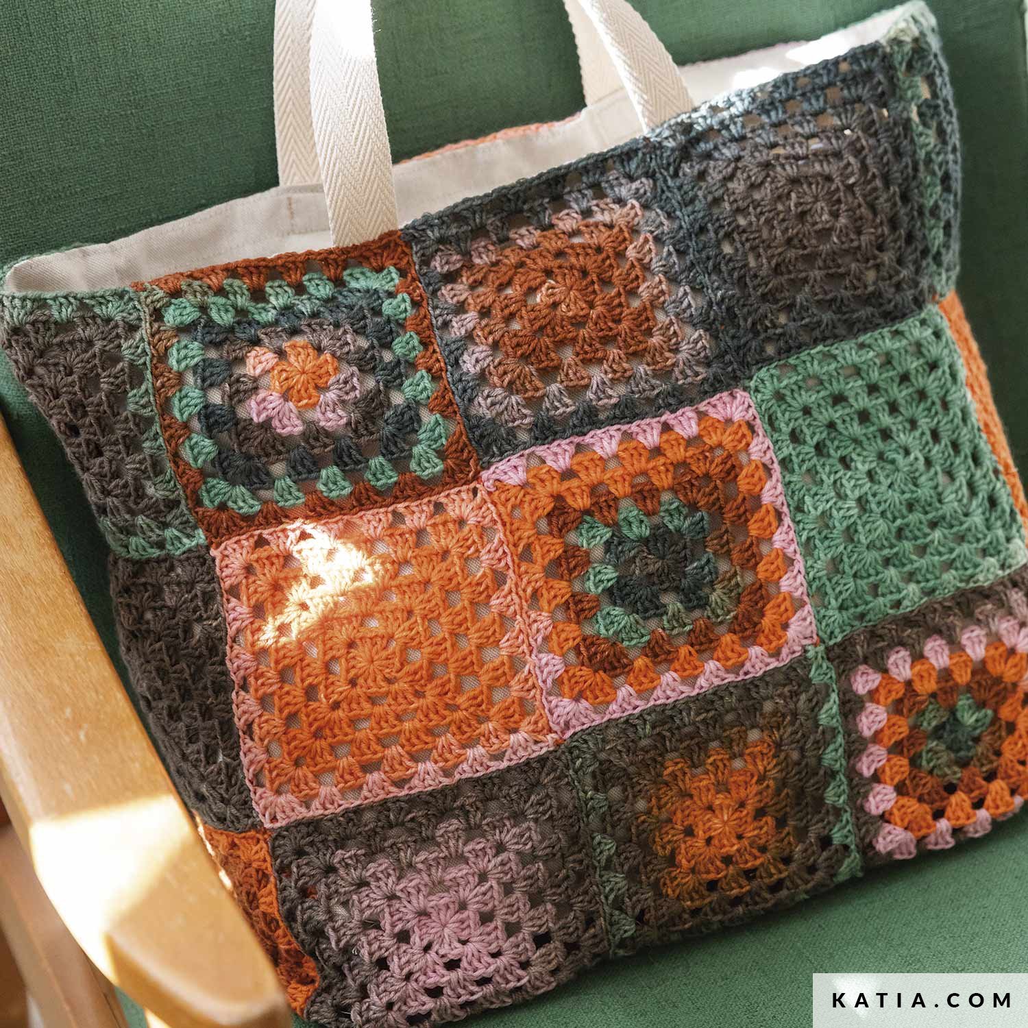 Kreiere deine eigene Shopper-Tasche aus Granny Squares mit Merino Baby Granny von Concept by Katia. Mit nur einem Knäuel erhältst du 24 Grannies mit Farbverlauf, mehrfarbig und einfarbig. Füge ein Knäuel Merino Baby und ein Canvas-Futter für ein perfektes Finish hinzu. Kreiere eine farbenfrohe und vielseitige Tasche, ideal für jede Gelegenheit
