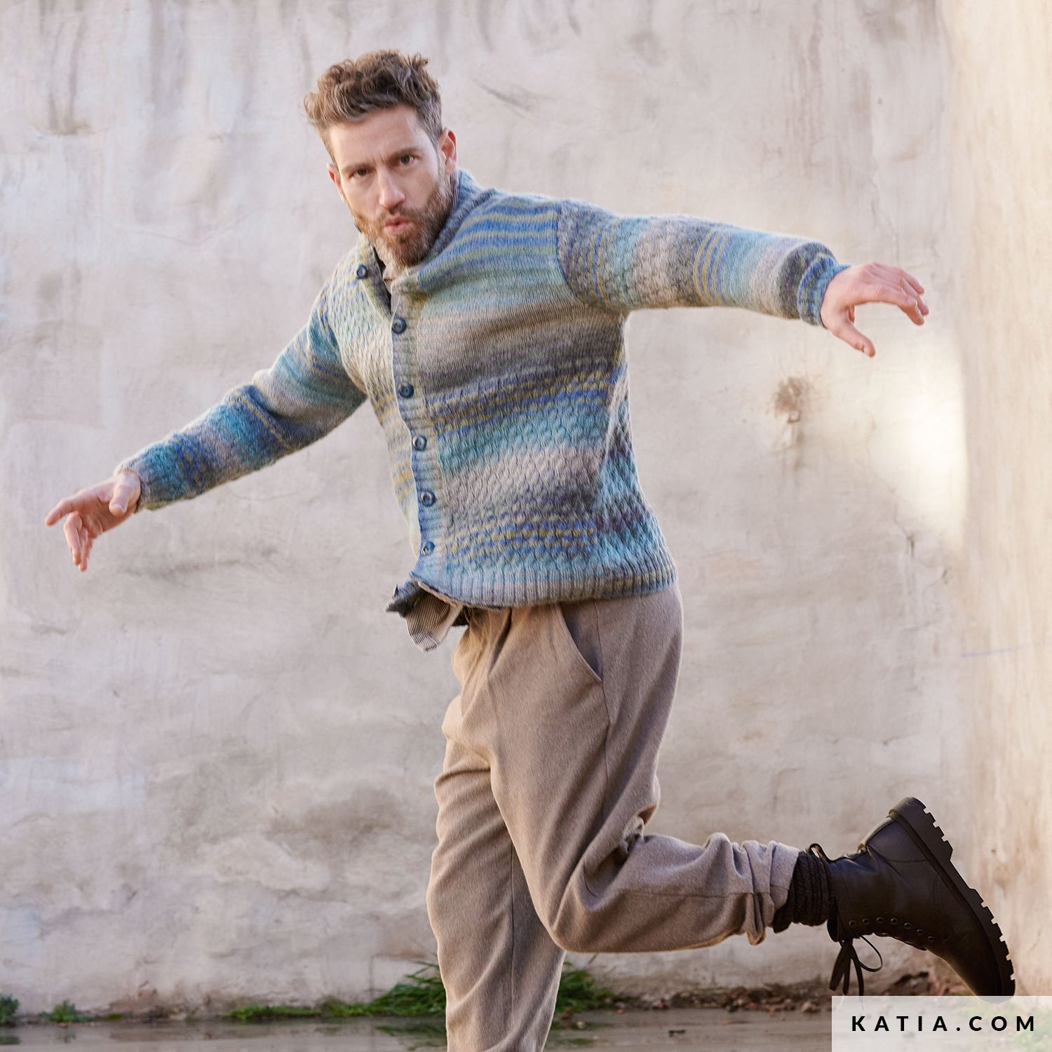 Mit dieser Anleitung für eine Herrenjacke mit Perkins-Kragen aus unserem Garn Alpacolor kreierst du einzigartige Retro-Looks! Das zeitlose Stück mit geraden Linien hat eine Knopfleiste mit 8 Knöpfen und einen klassischen Perkins-Kragen. Gestrickt wird es aus Alpacolor von Concept by Katia, einem flauschigen und herrlich leichten Garn, für einen bequemen und modernen Look. Ergänze dein Streetwear-Outfit mit dieser Strickjacke und verleihe ihm damit den perfekten Retro-Touch!
