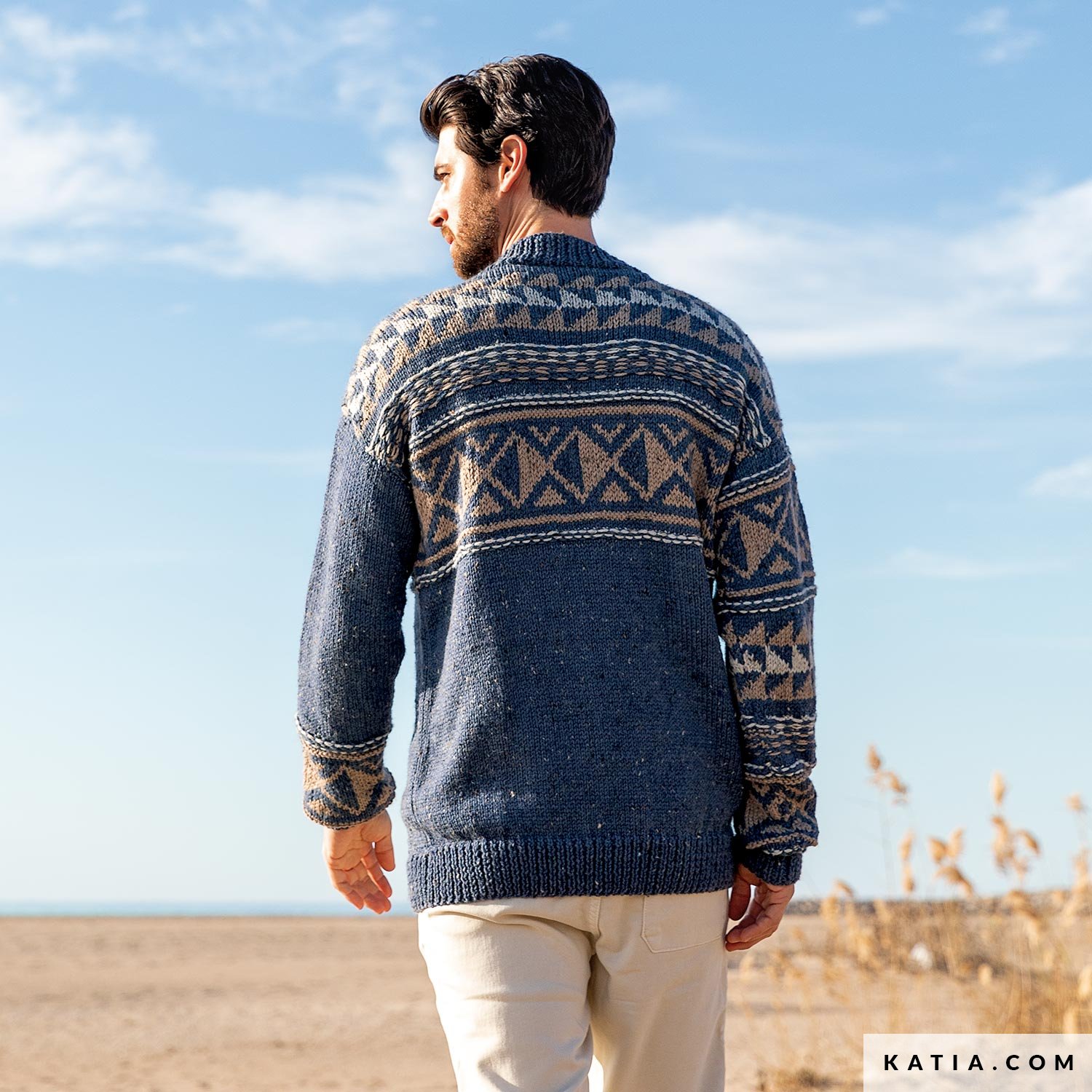 Entdecke diese Anleitung für einen Herrenpullover mit Jacquardmuster im Ethno-Stil aus Merino Tweed, erhältlich als PDF und im Magazin Katia Essentials 114. Dieses Rundhals-Design kombiniert drei Farben für ein originelles Jacquardmuster und ungleiche Ärmel. Dieser Pulli ist ein tolles Projekt für erfahrene Strickfans, mit dem du sowohl im Büro als auch in der Freizeit in der Natur perfekt gekleidet bist. Genieße das Stricken mit unserem Garn Katia Merino Tweed und hol dir jetzt die Anleitung!