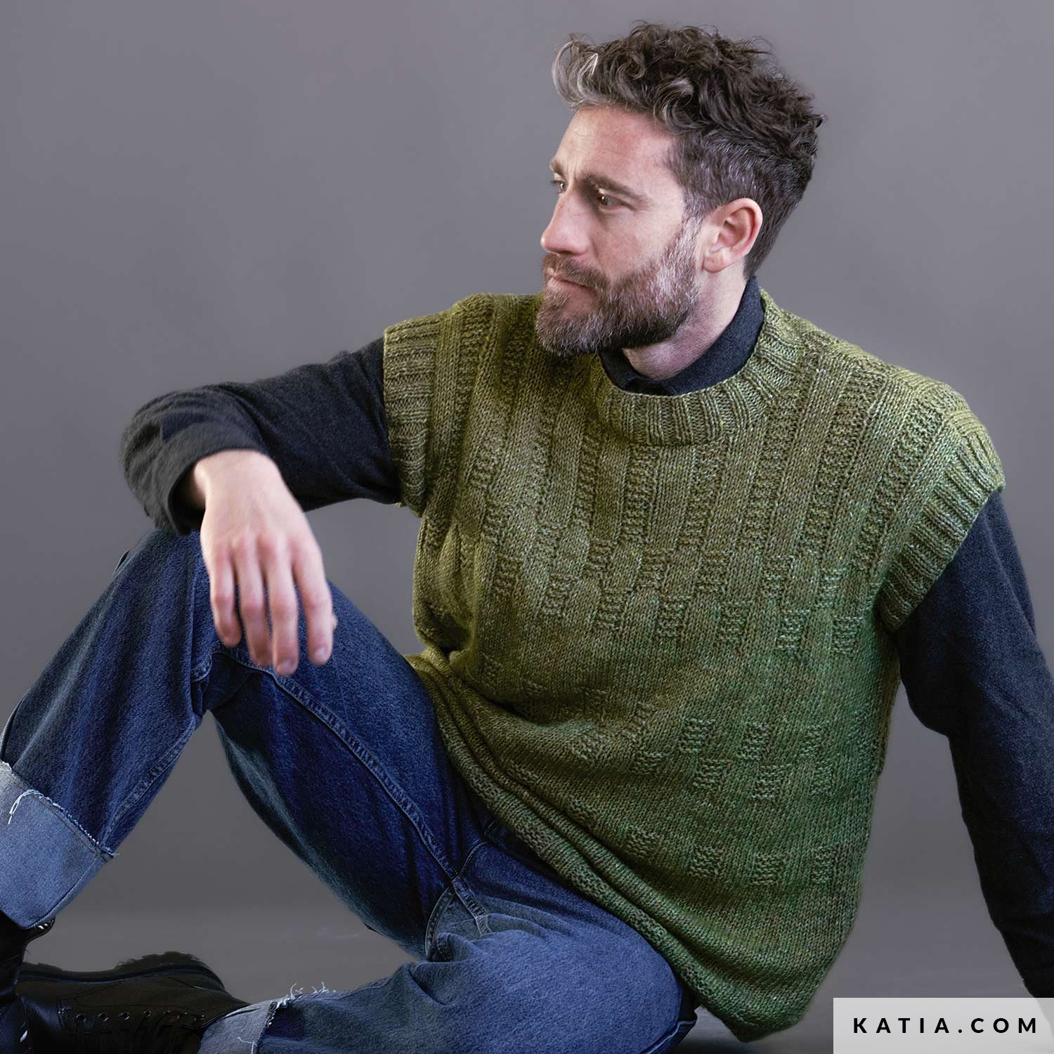 Stricke mit dieser Anleitung einen Herrenpullunder mit Strukturmuster und sorg für Aufsehen mit dem rustikalen und modernen Look. Mit dem luxuriösen Recycling-Garn Cotton-Merino Tweed von Concept by Katia machst du ein bequemes Kleidungsstück selbst, das einfach alles mitmacht und dich an kalten Tagen schön warmhält. Erfolg ist garantiert!