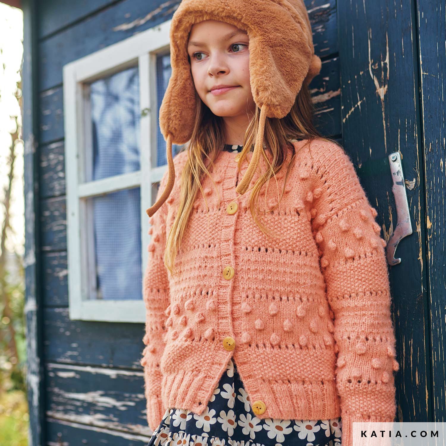 Stricke diese fröhliche Kinderjacke mit einer Mischung aus einfachen Maschen, Noppen und Lochmuster! In der Anleitung findest du Schritt-für-Schritt-Anweisungen für die Größen 2 bis 10 Jahre. Der Cardigan wird aus Katia Snowy gestrickt, einem weichen und kuscheligen Garn mit subtilem Plüsch-Look, damit deine Kleinen es bequem und warm haben. Eine Anleitung, die zu 100% Spaß macht!