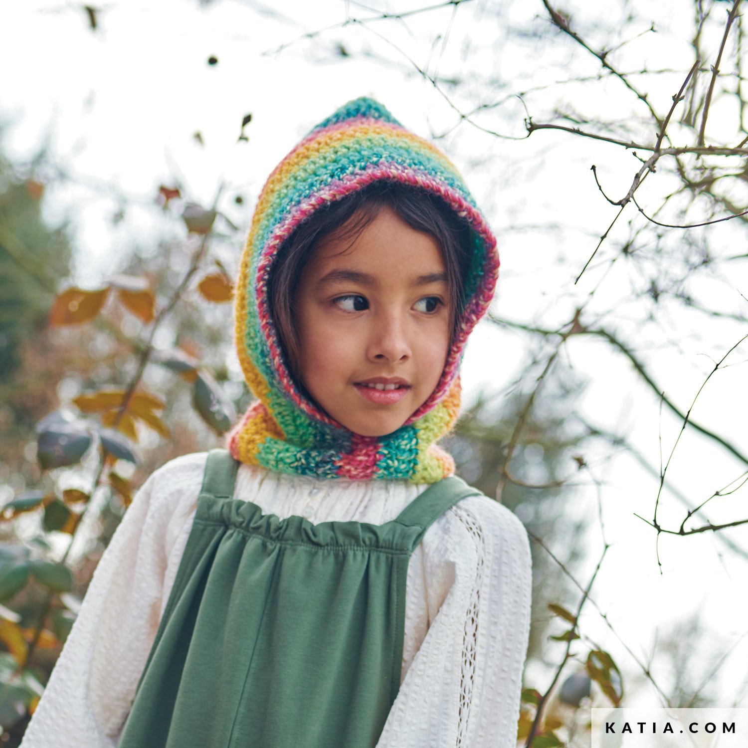 Diese Häkelanleitung für eine Kapuze ist einfach und macht richtig Spaß! Aus Katia Funny Azteca entsteht eine bunte und fröhliche Kapuze für deine Kids. Das Garn mit Farbverlauf bietet ein einzigartiges und beeindruckendes Finish, das jedes Kleidungsstück zu einem originellen Unikat macht. Das perfekte Geschenk für die Kleinsten im Haus!