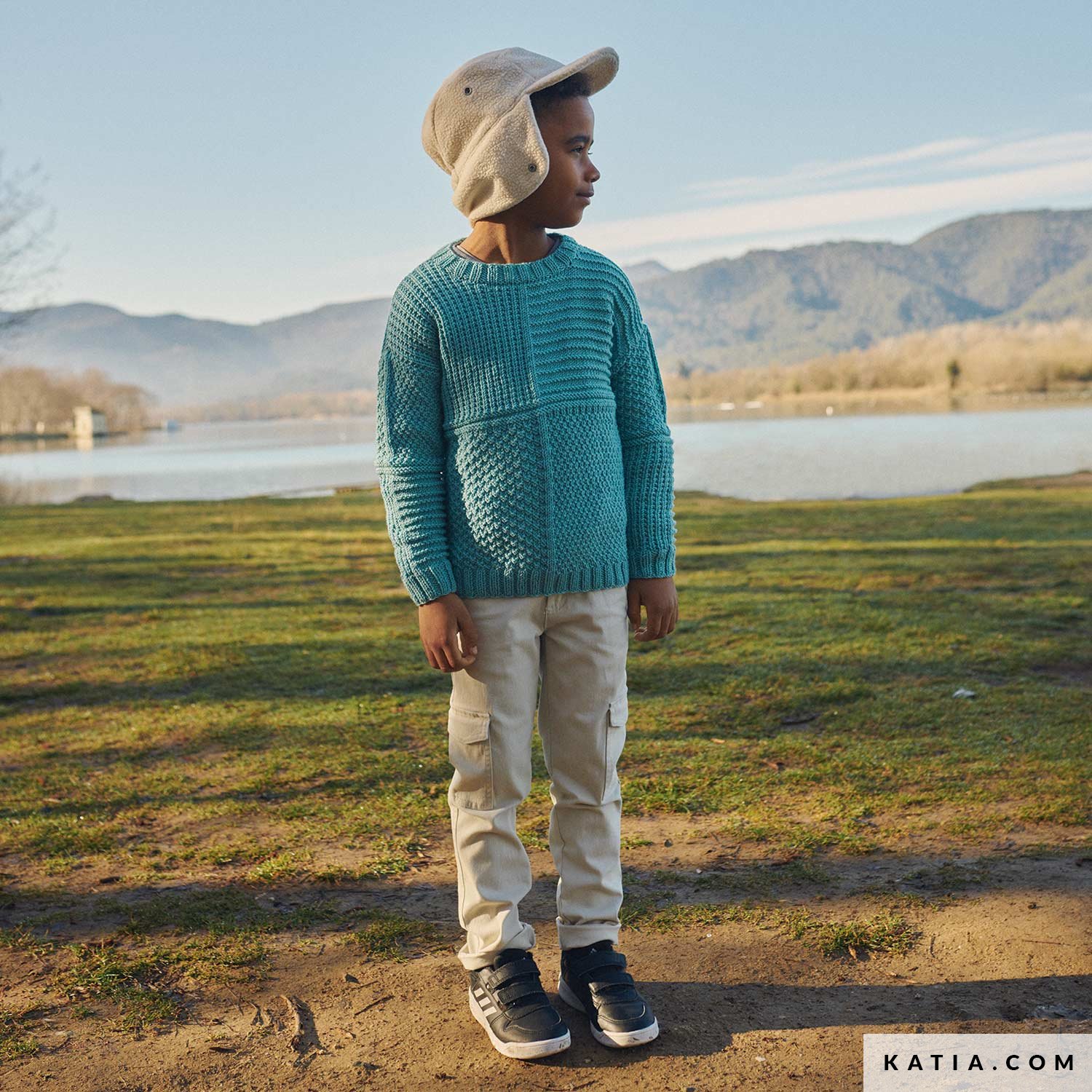 Einfache Anleitung für einen Kinderpullover mit leichten Mustern aus Merino 100 %. Dieses Modell ist ideal für Anfänger. In jedem Teil kann man unterschiedliche Muster üben. Der Kragen und die Bündchen sind im Rippenmuster 2x2 gestrickt und verleihen dem ganzen Sweater einen professionellen Touch.