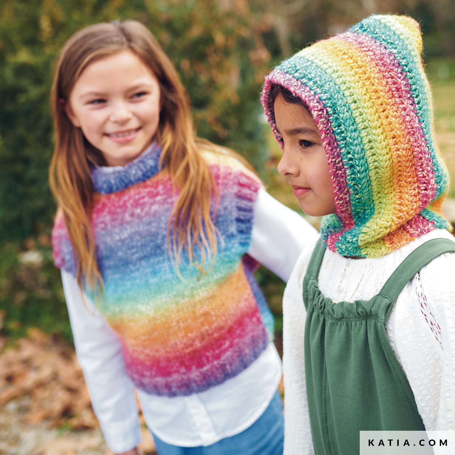 Stricke einen mehrfarbigen Pullunder in Glatt rechts mit unserem fröhlichen Multicolor-Garn mit Jacquard-Effekt! Diese Anleitung aus dem Magazin Kinder 107 ist auch als Einzel-PDF erhältlich und mit ihren klaren Anweisungen für die Größen 4 bis 12 Jahre perfekt für Anfänger*innen geeignet. Bring Farbe in die Garderobe der Kleinen mit dieser schönen Weste die vom Regenbogen inspiriert ist!