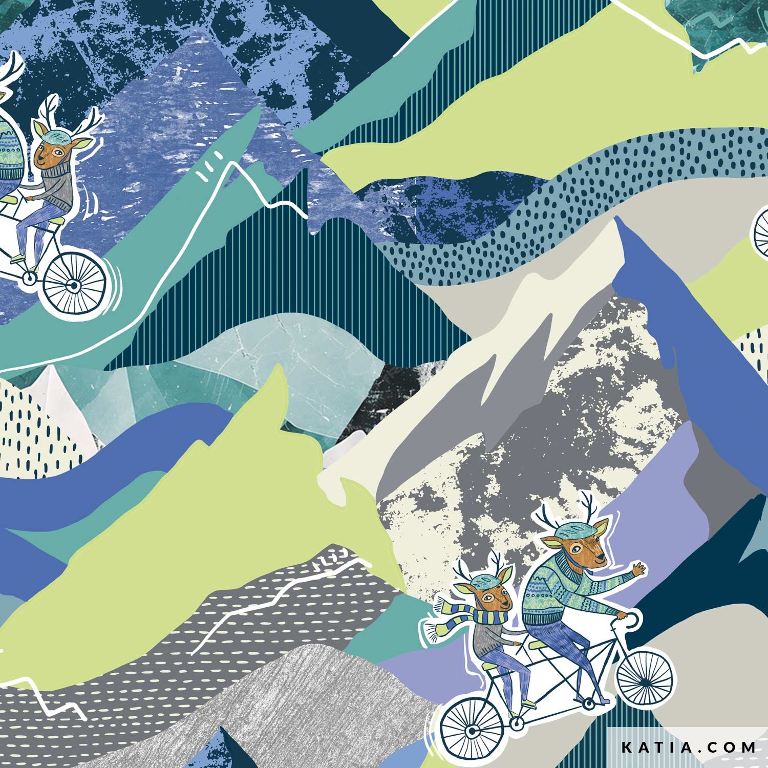Entdecke neue Abenteuer mit diesem Baumwoll-Popeline-Stoff, der ein lebendiges Design von Bergen und Radfahrern in Bewegung zeigt. Mit seiner Mischung aus Blau-, Grün- und Grautönen ist dieser Stoff ideal für sportliche und legere Kleidungsstücke.