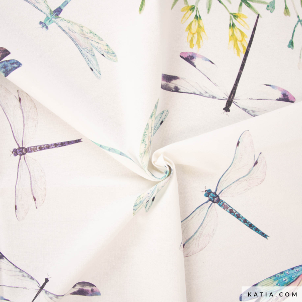 Diese bedruckte Canvas mit Libellen und botanischen Motiven ist perfekt, um deinen Kreationen eine besondere Note zu verleihen. Der Canvas Stoff Panama aus 100 % Baumwolle bietet Festigkeit und ist leicht zu verarbeiten – ideal für Taschen, Accessoires oder Wohntextilien.