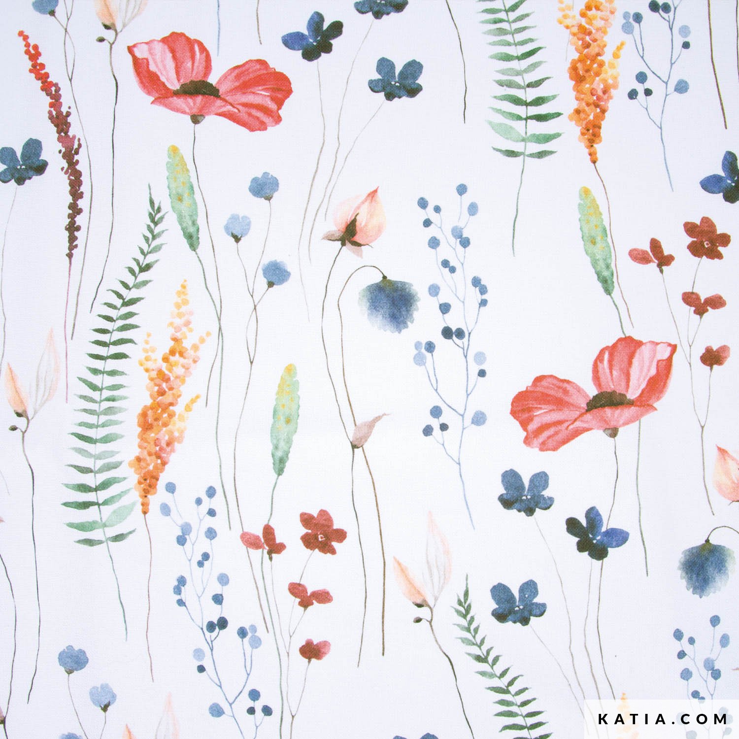 Kreiere Accessoires mit natürlichem Charme dank dieses recycelten Canvas-Stoffs von Katia Fabrics mit einem zarten Aquarelldruck aus Wildblumen. Mohnblumen, Ähren und Blättchen in Erdtönen, Rot und Blau schmücken diesen naturfarbenen Hintergrund und verleihen ihm eine handwerkliche und moderne Ästhetik. Dieser widerstandsfähige und nachhaltige Stoff, hergestellt aus recycelten Materialien, ist perfekt zum Nähen von Taschen, Kosmetiktäschchen, Rucksäcken, Kissen, Bezügen und handgemachten Deko-Elementen. Sein fester Griff erlaubt es, Formen mit guter Struktur zu gestalten, ohne dabei an Weichheit zu verlieren. Lass deine Ideen mit einem praktischen, originellen Stoff mit Umweltbewusstsein lebendig werden.