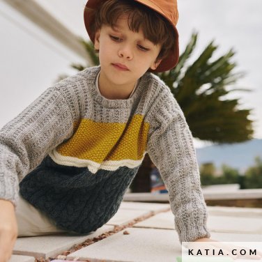 Entdecke 37 Anleitungen und stricke Kleidung für Kinder von 2 bis 12 Jahren mit unserem neuen Magazin Katia Kinder 103. Pullis, Jacken, Westen, Mützen und Strickkleider, mit denen die Kleinen viel Bewegungsfreiheit zum Toben mit ihren Freunden haben. Stricke in dieser Saison Herbst/Winter 2022/23 alles, was Spaß macht: von den einfachsten Maschen bis hin zu wunderschönen Lochmustern, rustikalen irischen Mustern oder Intarsien. Wir haben für dich alle Trends der Kindermode zusammengestellt. Zum einen sanfte und natürliche Farben kombiniert mit Orangetönen, die herrlich zur herbstlichen Natur passen. Und zum anderen lebendige Farbtupfer, die zweifarbige geometrische Muster zum Strahlen bringen. Darüber hinaus bringen wir im Magazin Katia Kinder 103 auch Wassergrün- und Türkistöne mit rosa-, apricot- und orangefarbenen Nuancen zusammen. Lass dich überraschen!